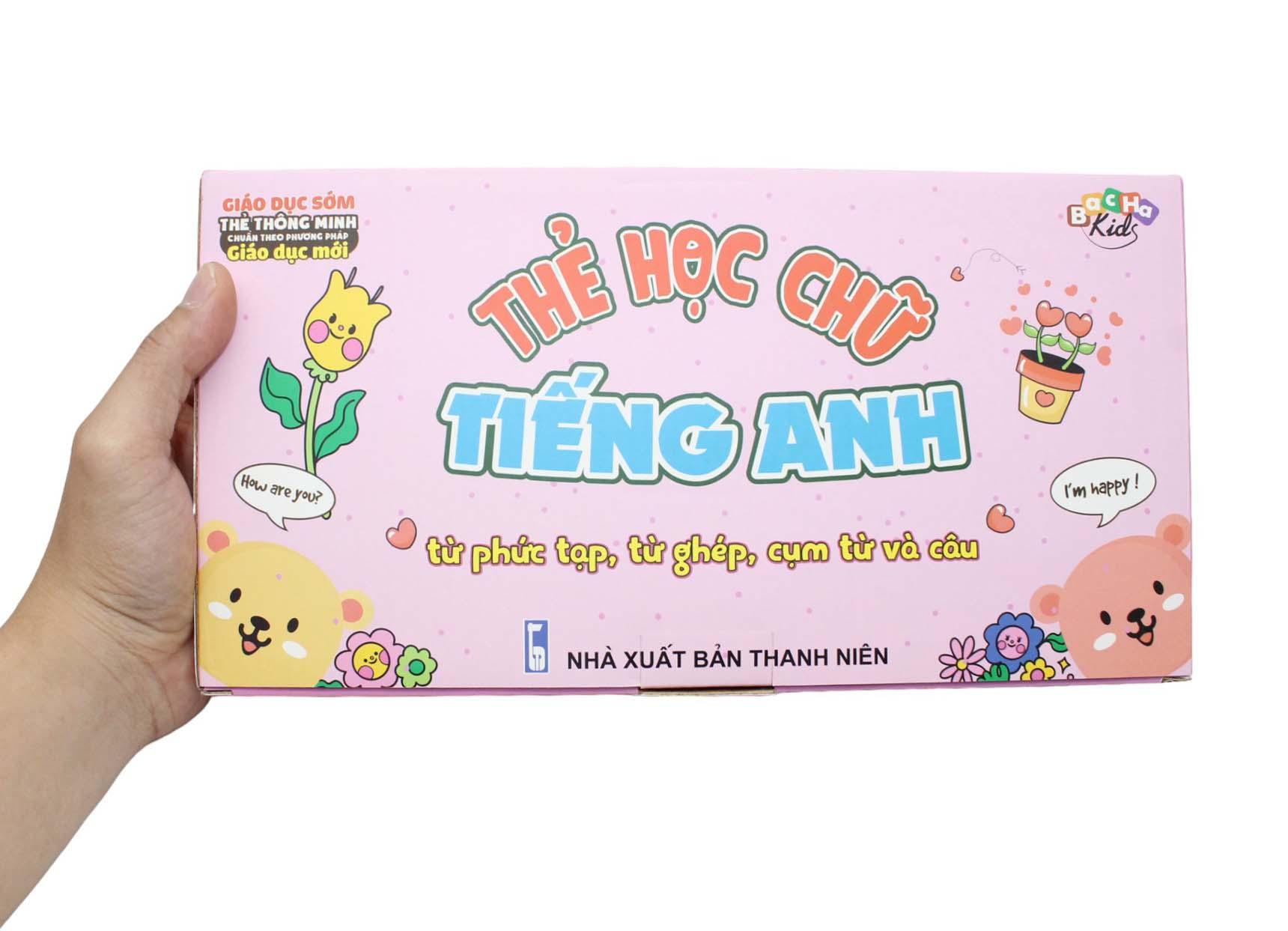 Mua tại TiktokFlash Card Tiếng Anh - Từ Phức Tạp, Từ Ghép, Cụm Từ Và Câu Flashcard Dạy Trẻ Theo Phương Pháp Glenn Doman giúp bé tiếp cận tiếng Anh từ nhỏ, nhận biết và ghi nhớ những từ ngữ từ đơn giản đến phức tạp theo phương pháp Glenn Doman. Bộ thẻ là tập hợp những từ phức tạp, từ ghép, cụm từ và câu trong tiếng Anh với các chủ đề: Số đếm, thời gian, đồ vật, thành phần ngôi nhà... Flashcard được in trên chất liệu giấy ivory dày dặn, có độ cứng phù hợp cho tráo thẻ. Bộ gồm 102 thẻ chữ in 2 mặt (mặt trước màu xanh, mặt sau màu đen) và hướng dẫn sử dụng. Toàn bộ được đựng trong hộp sang trọng và tiện cho việc cất trữ.