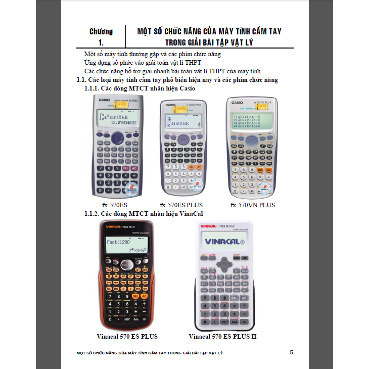 Chương 1. Một số chức năng của máy tính bỏ túi trong giải bài tập vật lý