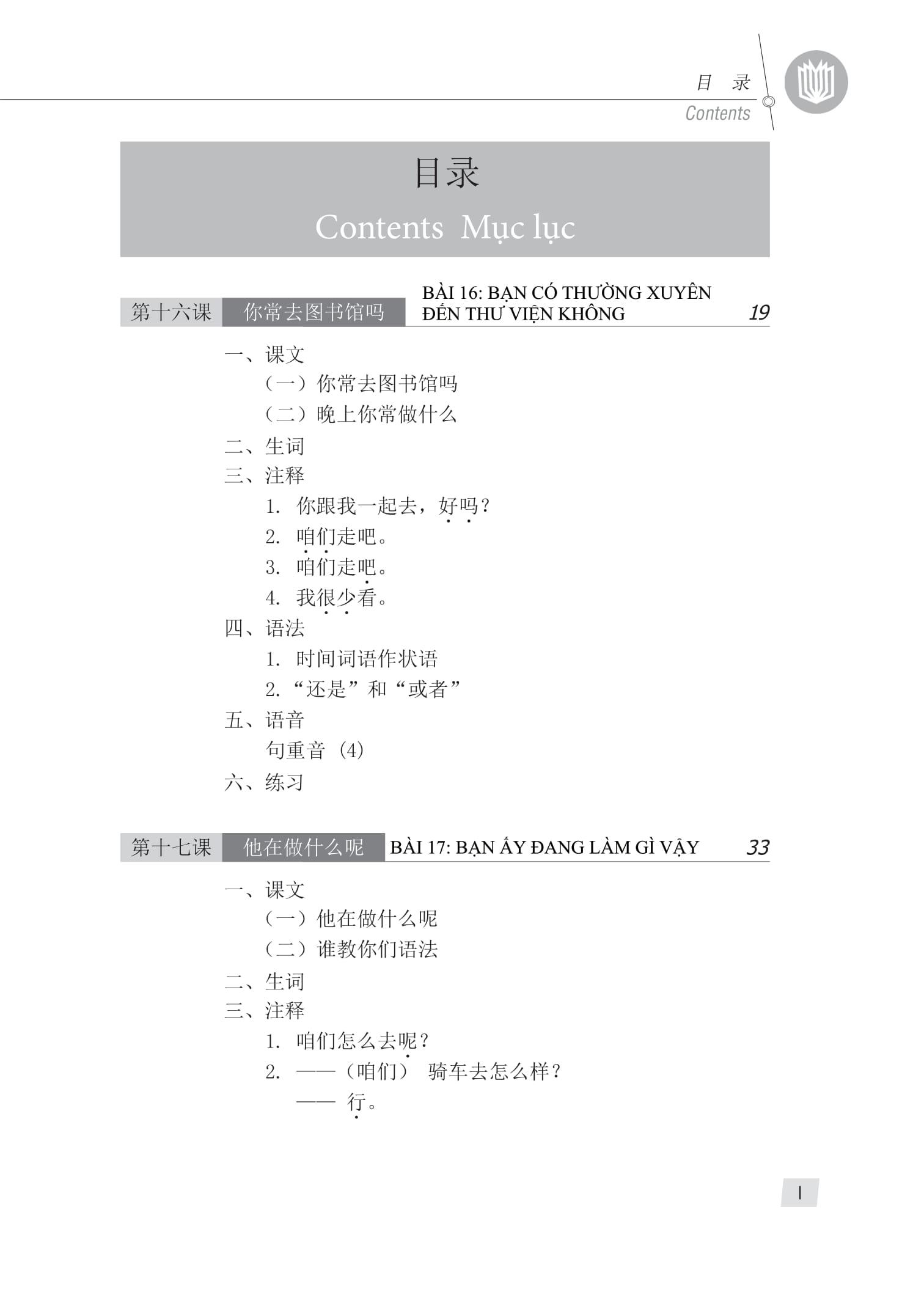 Phần chú thích trong giai đoạn ngữ âm chủ yếu giới thiệu kiến thức cơ bản về ngữ âm tiếng Hán. Còn ở giai đoạn ngữ pháp và mẫu câu, chủ yếu giới thiệu và giải thích một số kiến thức trọng điểm về ngôn ngữ và bối cảnh văn hóa Trung Quốc. Đối với những câu có điểm ngữ pháp xuất hiện trong bài khóa nhưng chưa được giải thích, hãy để sinh viên được hiểu nghĩa thông qua phần dịch nội dung chú thích.