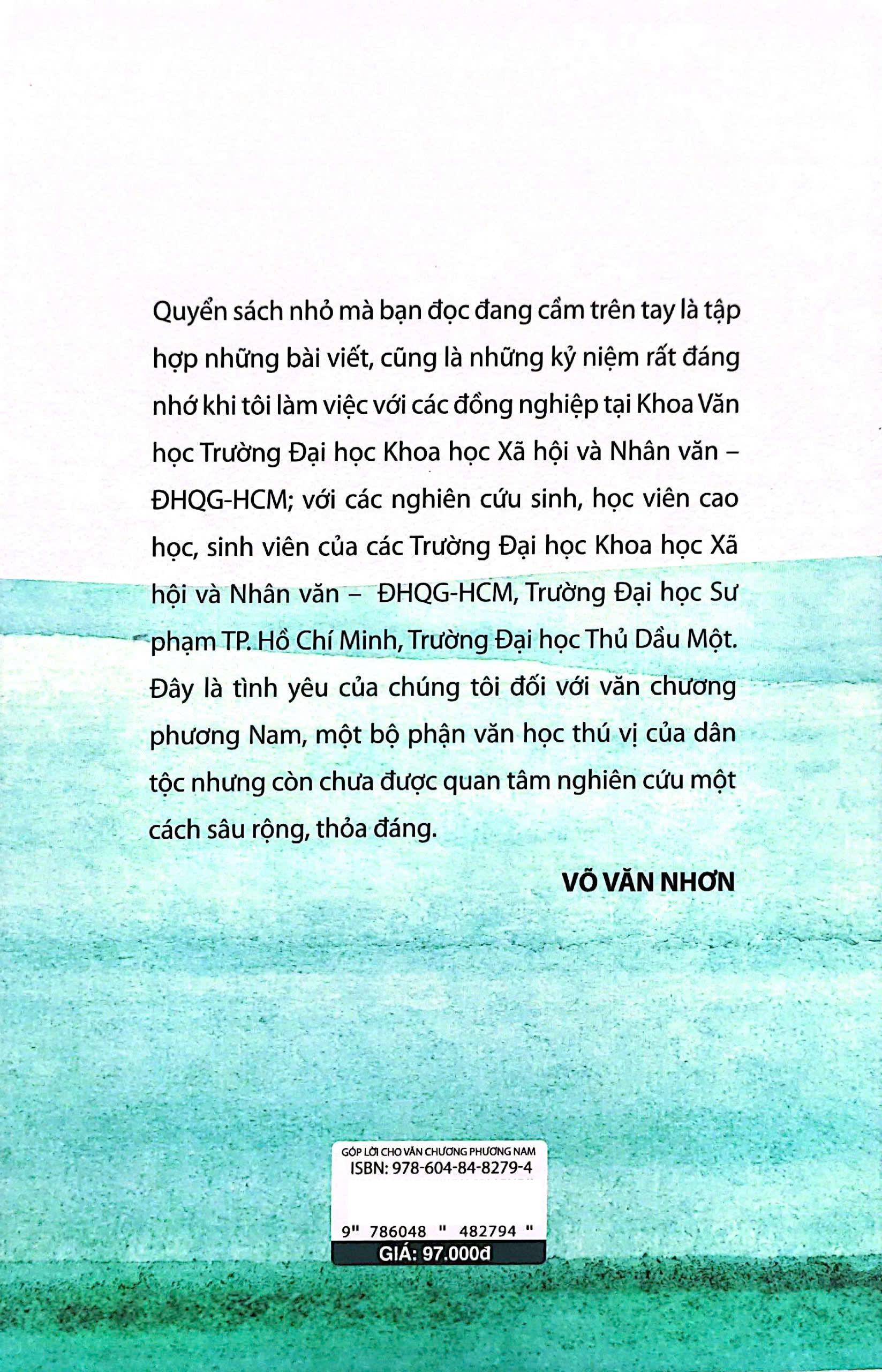 Góp Lời Cho Văn Chương Phương Nam Quyển sách nhỏ mà bạn đọc đang cầm trên tay là tập hợp những bài viết, cũng là những kỷ niệm rất đáng nhớ khi tôi làm việc