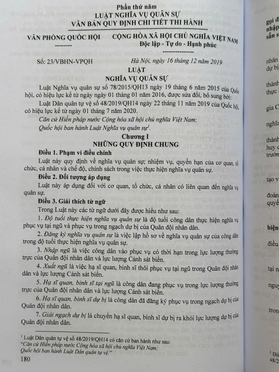 Phần thứ năm. LUẬT NGHĨA VỤ QUÂN SỰ VÀ VĂN BẢN QUY ĐỊNH CHI TIẾT THI HÀNH