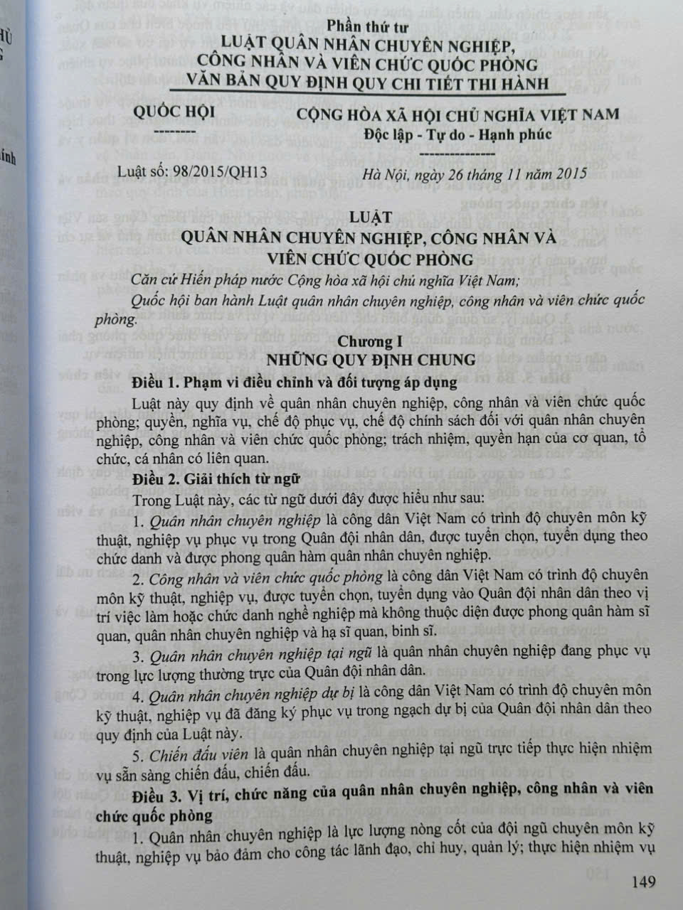 Phần thứ tư. LUẬT QUÂN NHÂN CHUYÊN NGHIỆP, CÔNG NHÂN VÀ VIÊN CHỨC QUỐC PHÒNG – VĂN BẢN QUY ĐỊNH QUY CHI TIẾT THI HÀNH