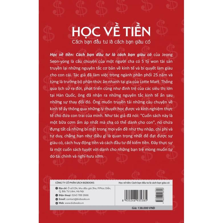 Thấu hiểu những băn khoăn trăn trở của người trẻ trên con đường đi đến tự do tài chính, cuốn sách “Học về tiền” của tác giả Jeong Seon-Yong do công ty cổ phần sách Bizbooks phát hành đã ra đời và gửi gắm đến bạn đọc gần xa. Bằng lối viết đầy nhân văn và sâu lắng dưới giọng tâm tình của người cha dành cho con, cuốn sách như tấm la bàn chỉ đường dành tặng cho cậu con trai của ông về 25 năm kinh nghiệm làm việc và trải nghiệm của chính tác giả, thông qua những bài viết về đầu tư và sự giàu có mà bất kì bạn trẻ nào cũng nên đọc một lần trong đời.