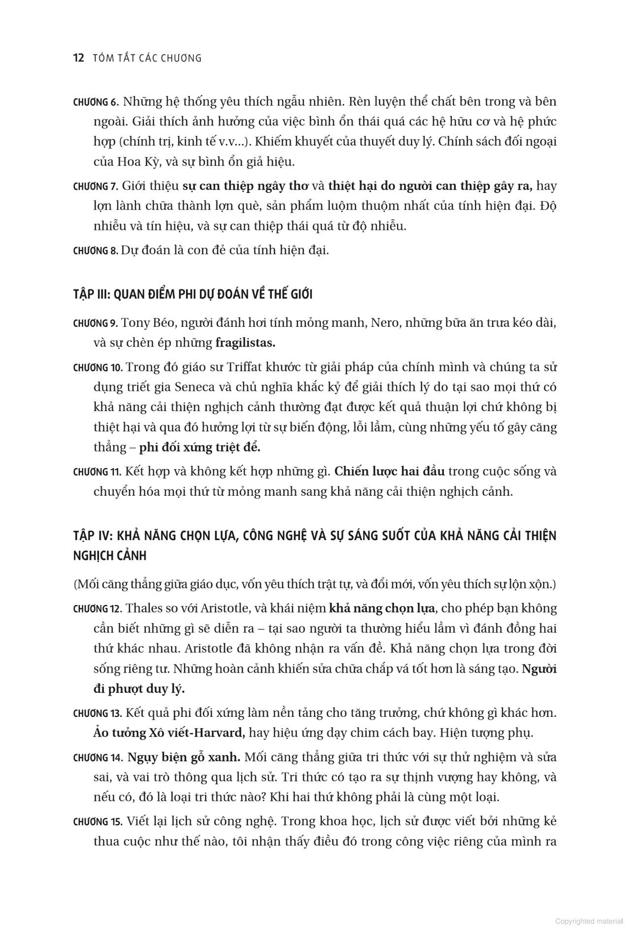 Quyển sách này bao trùm vấn đề phát minh đổi mới thông qua thử nghiệm và sửa sai, các quyết định trong đời sống, chính trị, quy hoạch đô thị, chiến tranh, tài chính cá nhân, các hệ thống kinh tế, và y khoa.