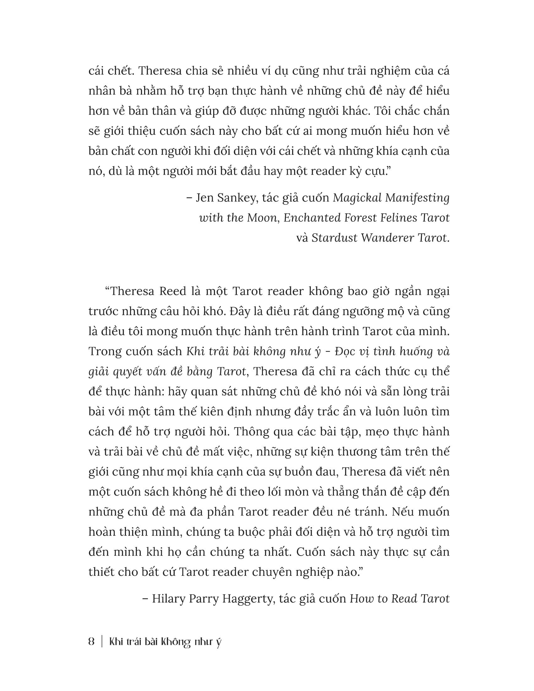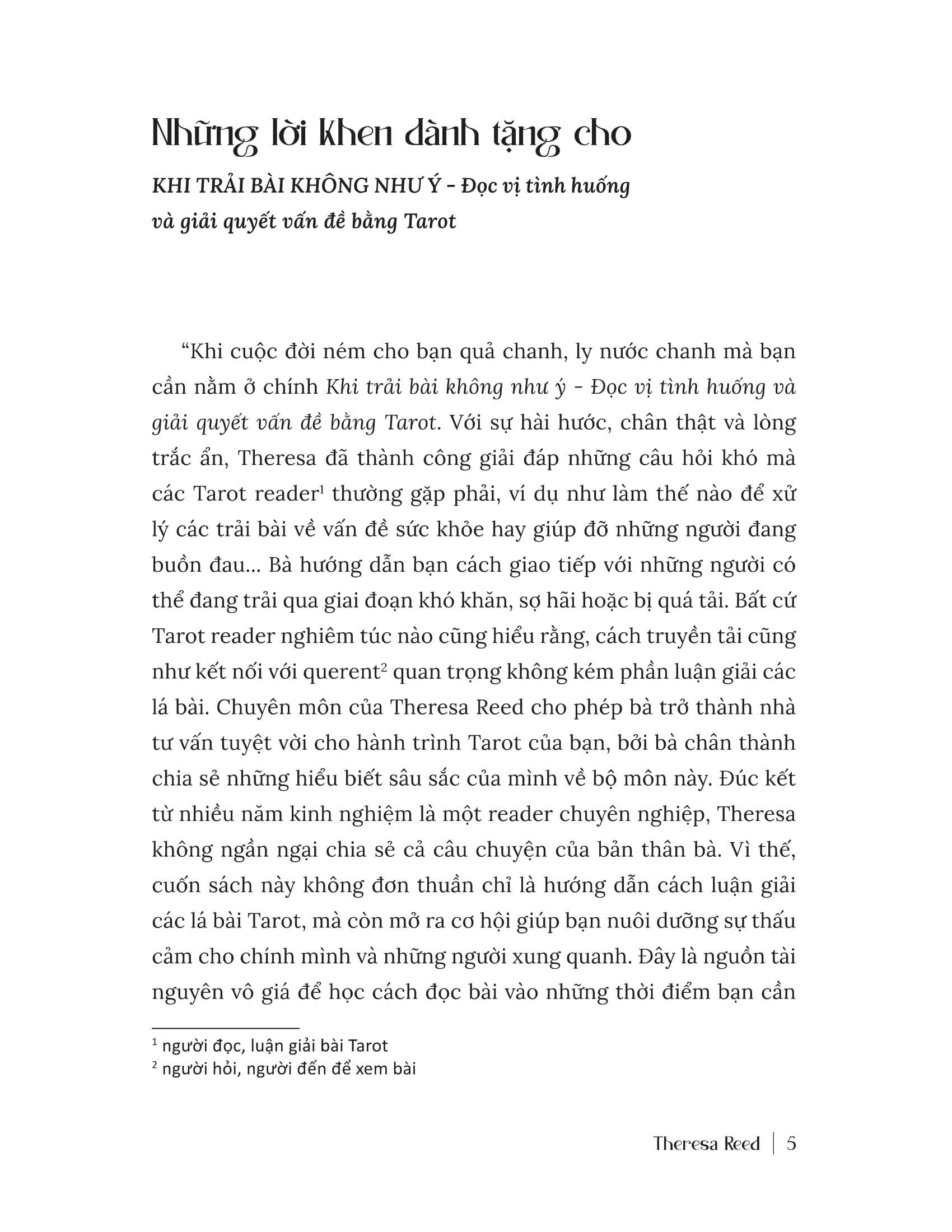 Cuốn sách Khi trải bài không như ý - Đọc vị tình huống và giải quyết vấn đề bằng Tarot cung cấp cho bạn: