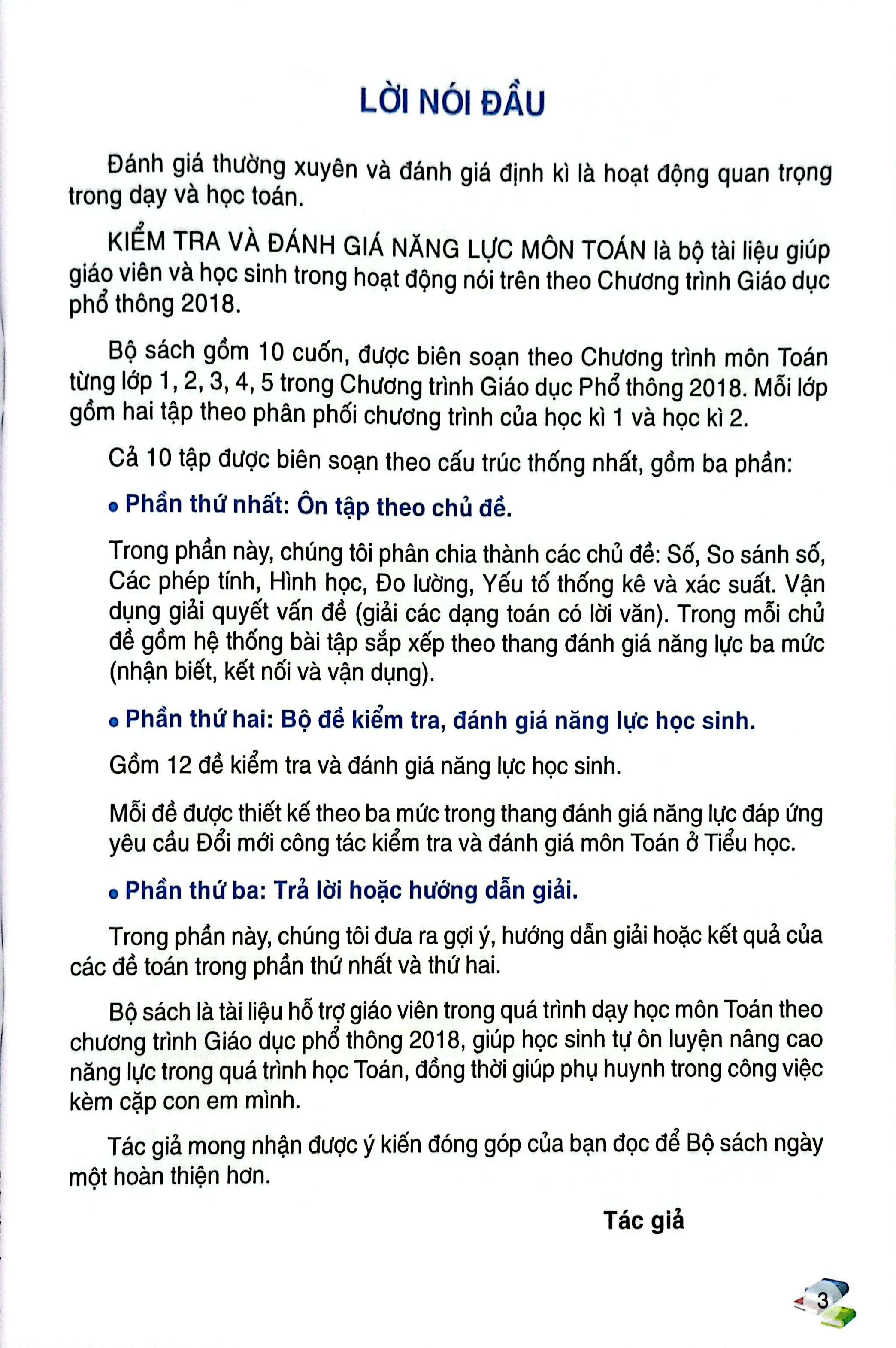 KIỂM TRA VÀ ĐÁNH GIÁ NĂNG LỰC MÔN TOÁN là bộ tài liệu giúp giáo viên và học sinh trong hoạt động nói trên theo Chương trình Giáo dục phổ thông 2018.
