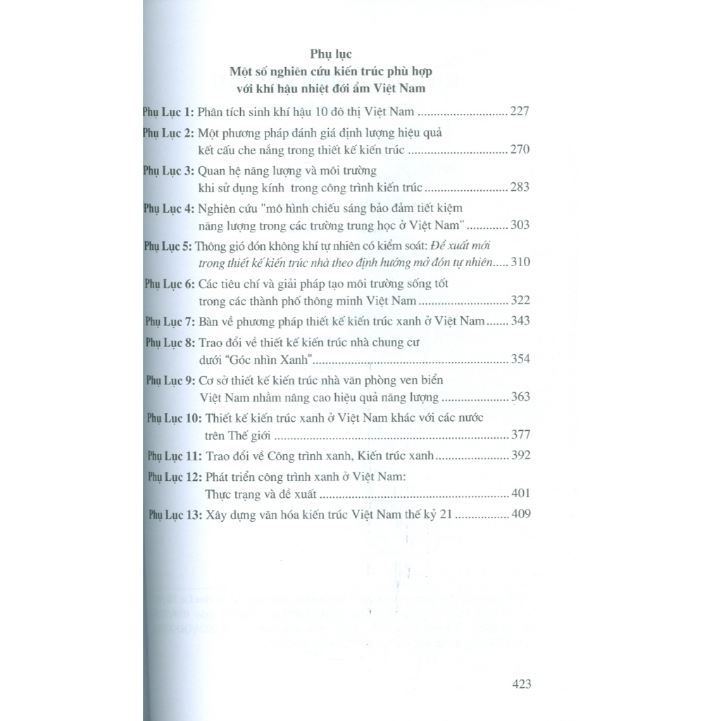 - Từ đó đề xuất các Chiến lược và Giải pháp thiết kế kiến trúc sinh khí hậu trong điều kiện khí hậu Việt Nam để tạo được môi trường tiện nghi trong nhà (Chương 5 & 6). Chương 7 giới thiệu một vài công trình nổi tiếng trên thế giới.