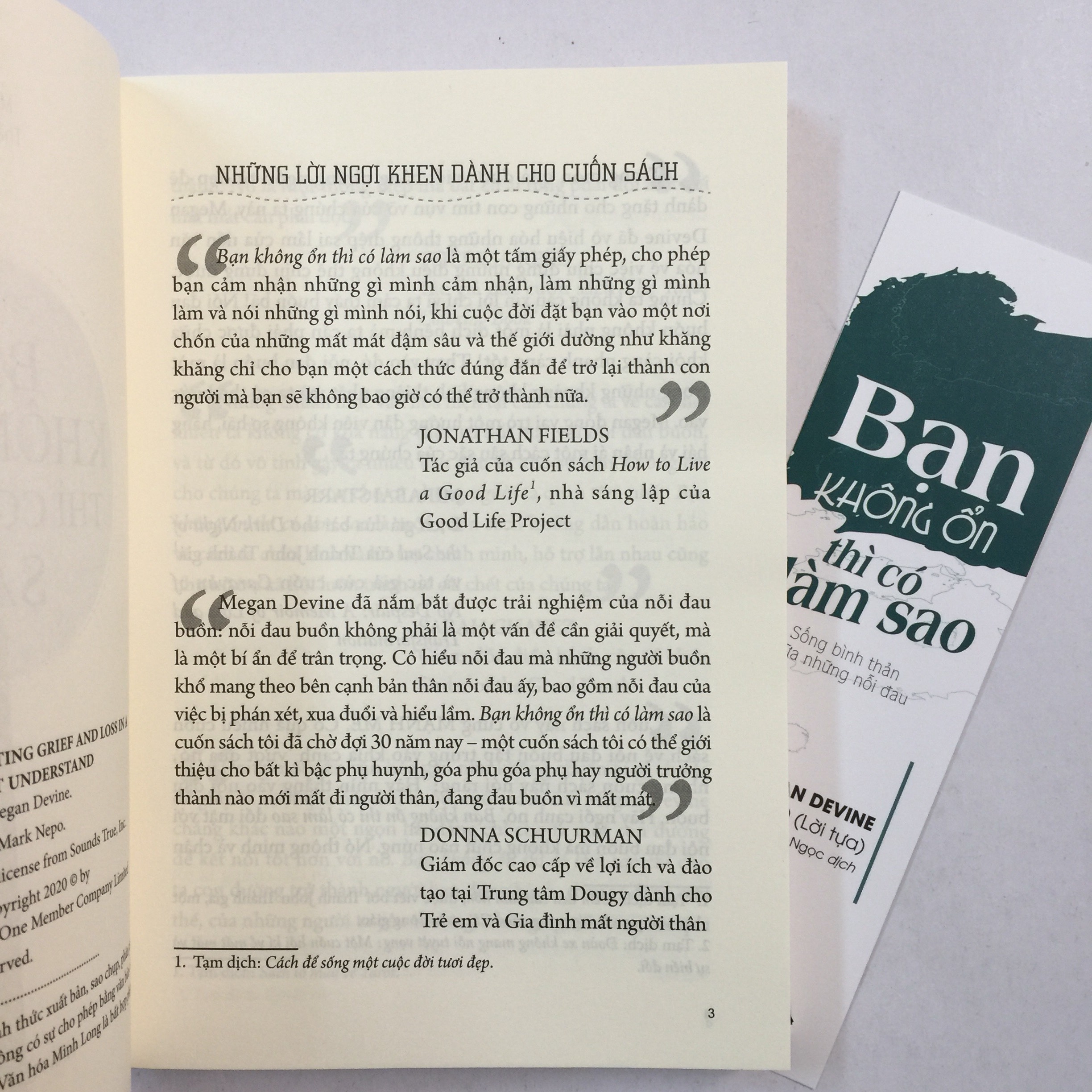 “ Một trong những điều khó khăn nhất của việc trải qua những thời khắc khó khăn là cố gắng có được và trao đi sự hỗ trợ. Trong Bạn Không Ổn Thì Có Làm sao, Megan Devine dẫn dắt chúng ta đi qua những khoảng thời gian khó khăn bằng sự tế nhị. Với thái độ chấp nhận và lòng trắc ẩn đầy yêu thương, Megan là một quan điểm mới mẻ, ấm áp mà bạn cần.” – Vanessa Van Edwards