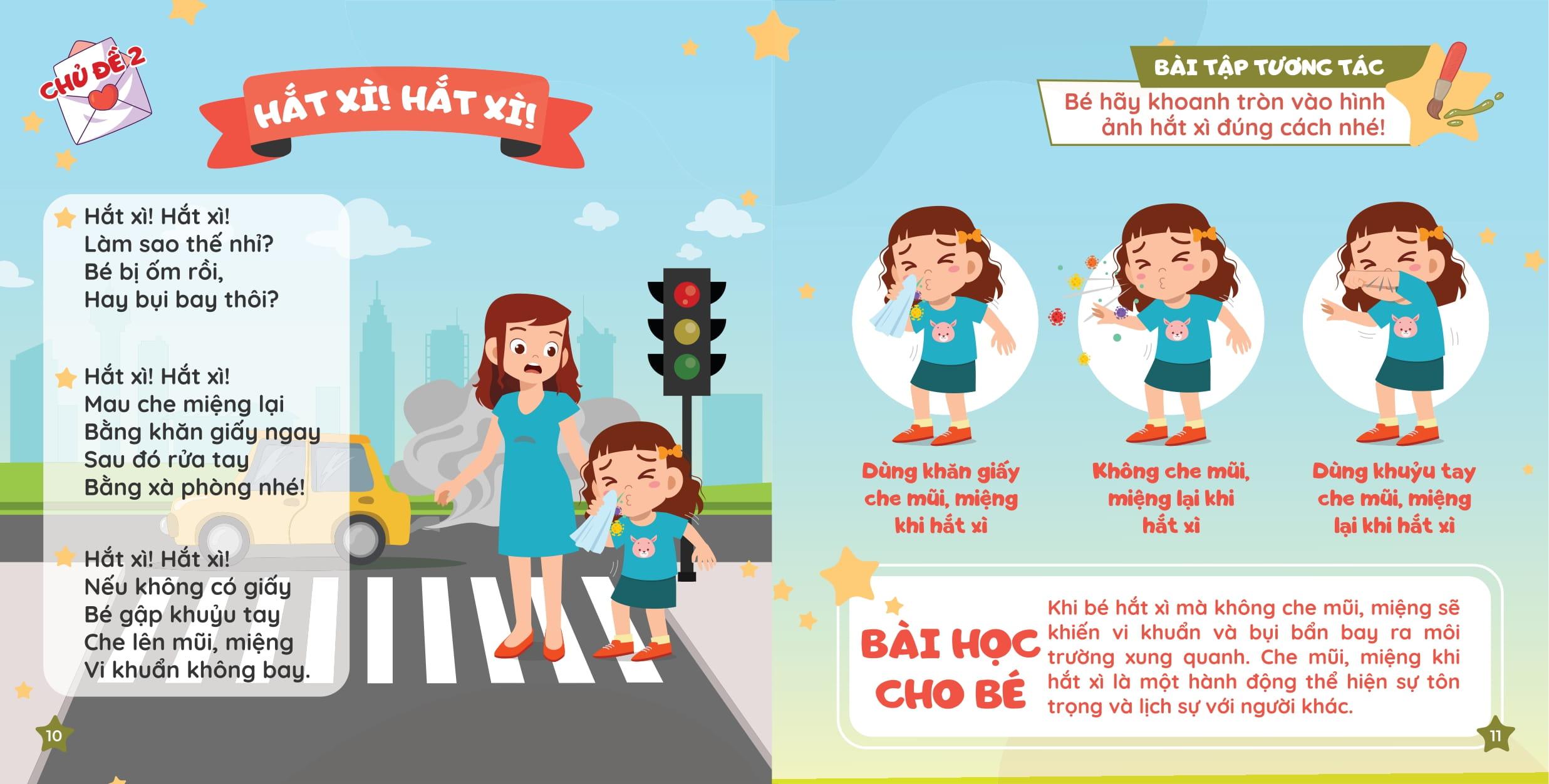 Cuốn sách thứ hai trong bộ Growbooks là một “vườn thơ kỹ năng sống” đầy màu sắc, nơi trẻ được học cách tự chăm sóc bản thân thông qua những bài thơ ngắn gọn, dễ nhớ, giàu nhịp điệu. Mỗi bài thơ là một tình huống quen thuộc trong đời sống hằng ngày được kể lại bằng ngôn từ gần gũi, vui tươi và sinh động.