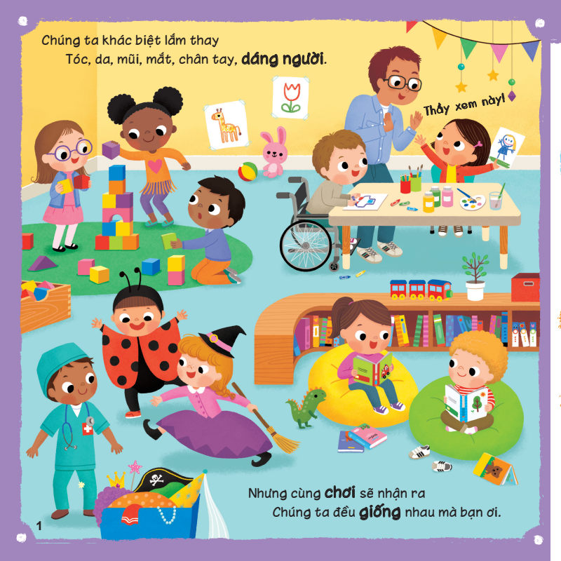 Cuốn sách phù hợp với phổ tuổi rộng từ 3-6 tuổi. 3-4 tuổi con tập trung kích thích giác quan và khám phá kiến thức cơ bản qua hoạt động Lật-Mở miếng ghép. 5-6 tuổi con được khuyến khích hiểu cơ thể và áp dụng các bài học kỹ năng chăm sóc, vệ sinh, bảo vệ bản thân.