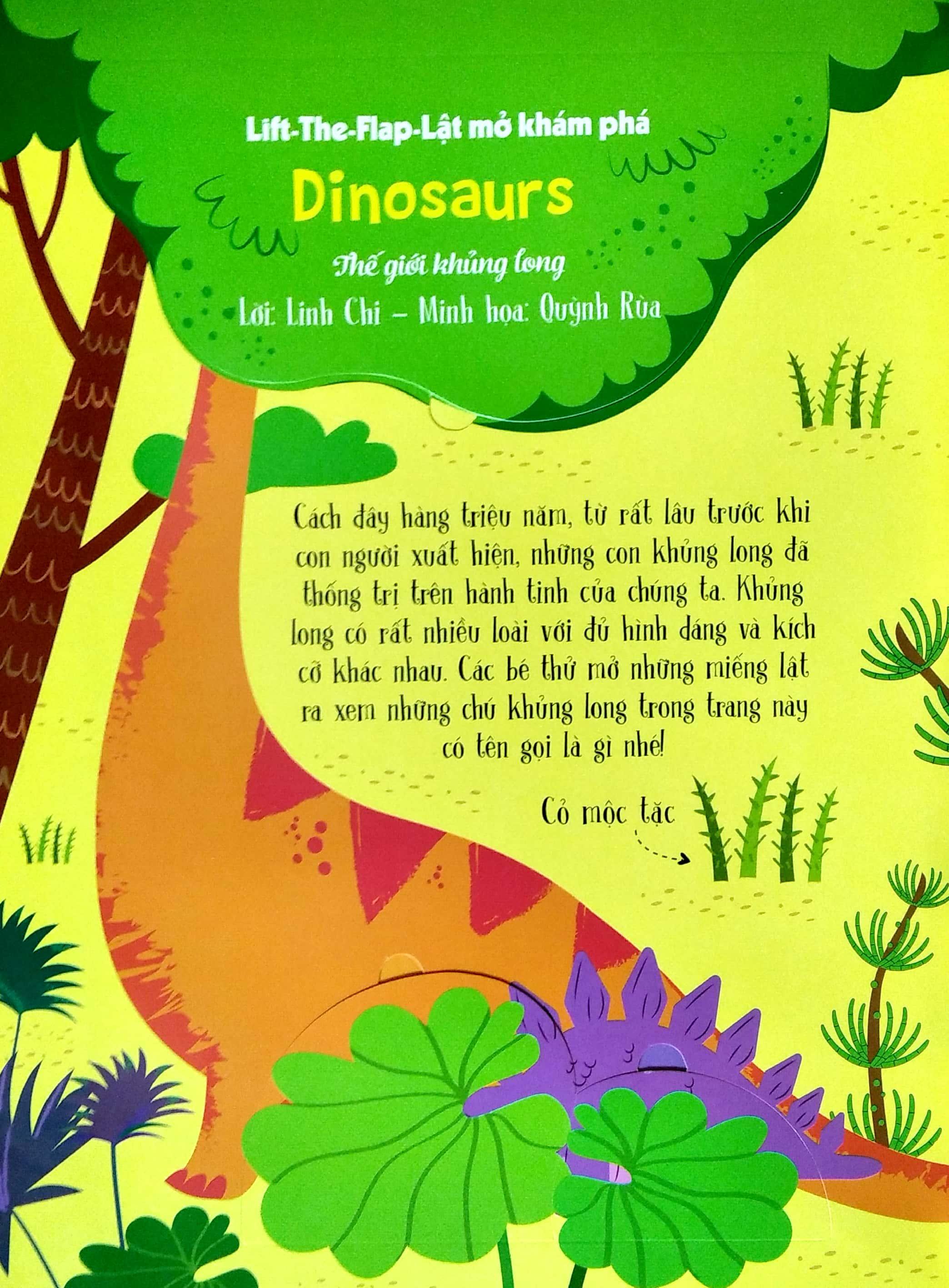 Để thỏa mãn "những mối quan tâm mãnh liệt" đó của các em về khủng long, cuốn sách Lật mở khám phá - Thế giới khủng long sẽ đưa em về thời tiền sử khám phá loài vật đã từng thống trị thế giới. Cùng lật mở và xem tìm hiểu các chủ đề trong cuốn sách này nhé: