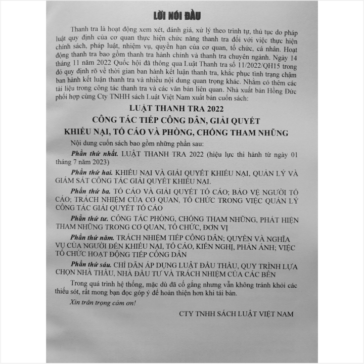 Nhà sách Nam Việt – Namvietbook xin trân trọng giới thiệu sách Luật Thanh Tra 2022 - Công Tác Tiếp Công Dân, Giải Quyết Khiếu Nại, Tố Cáo và Phòng Chống Tham Nhũng Sách Luật Thanh Tra 2022 - Công Tác Tiếp Công Dân, Giải Quyết Khiếu Nại, Tố Cáo và Phòng Chống Tham Nhũng