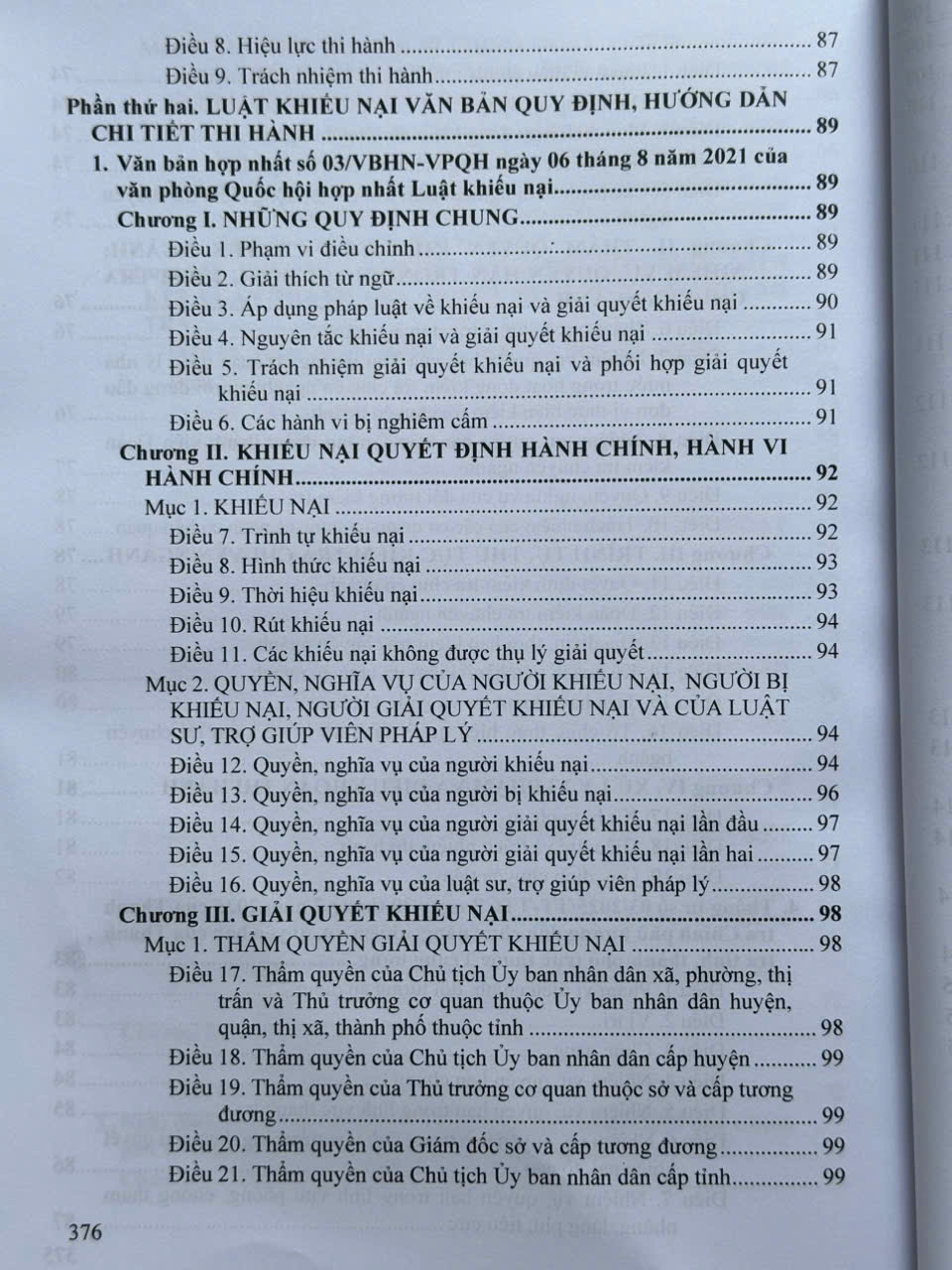 Phần thứ hai. LUẬT KHIẾU NẠI VÀ VĂN BẢN QUY ĐỊNH, HƯỚNG DẪN CHI TIẾT THI HÀNH