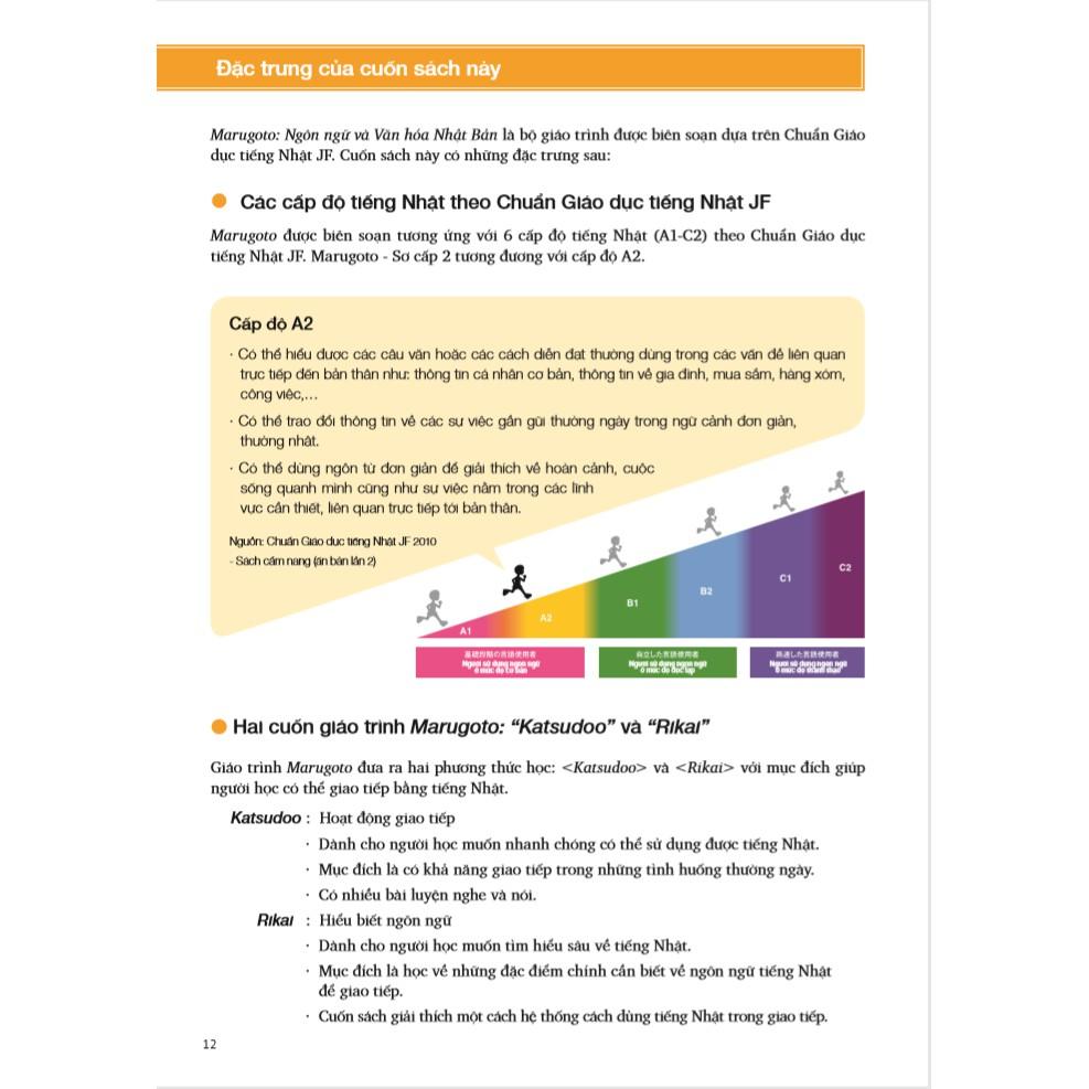 Cấp độ A2 thuộc mức độ sơ cấp và trình độ A2-2 là trình độ nâng cao hơn sau khi bạn đã học qua A2-1. Tương tự với những cuốn Marugoto trước đó, Marugoto - Ngôn ngữ và Văn hóa Nhật Bản A2-2 cũng được chia làm 2 quyển “Katsudoo” (Hoạt động giao tiếp) và “Rikai” (Hiểu biết ngôn ngữ). Qua đó có thể giúp người học lựa chọn được phương pháp sử dụng giáo trình tùy theo nhu cầu và cách học của mình.