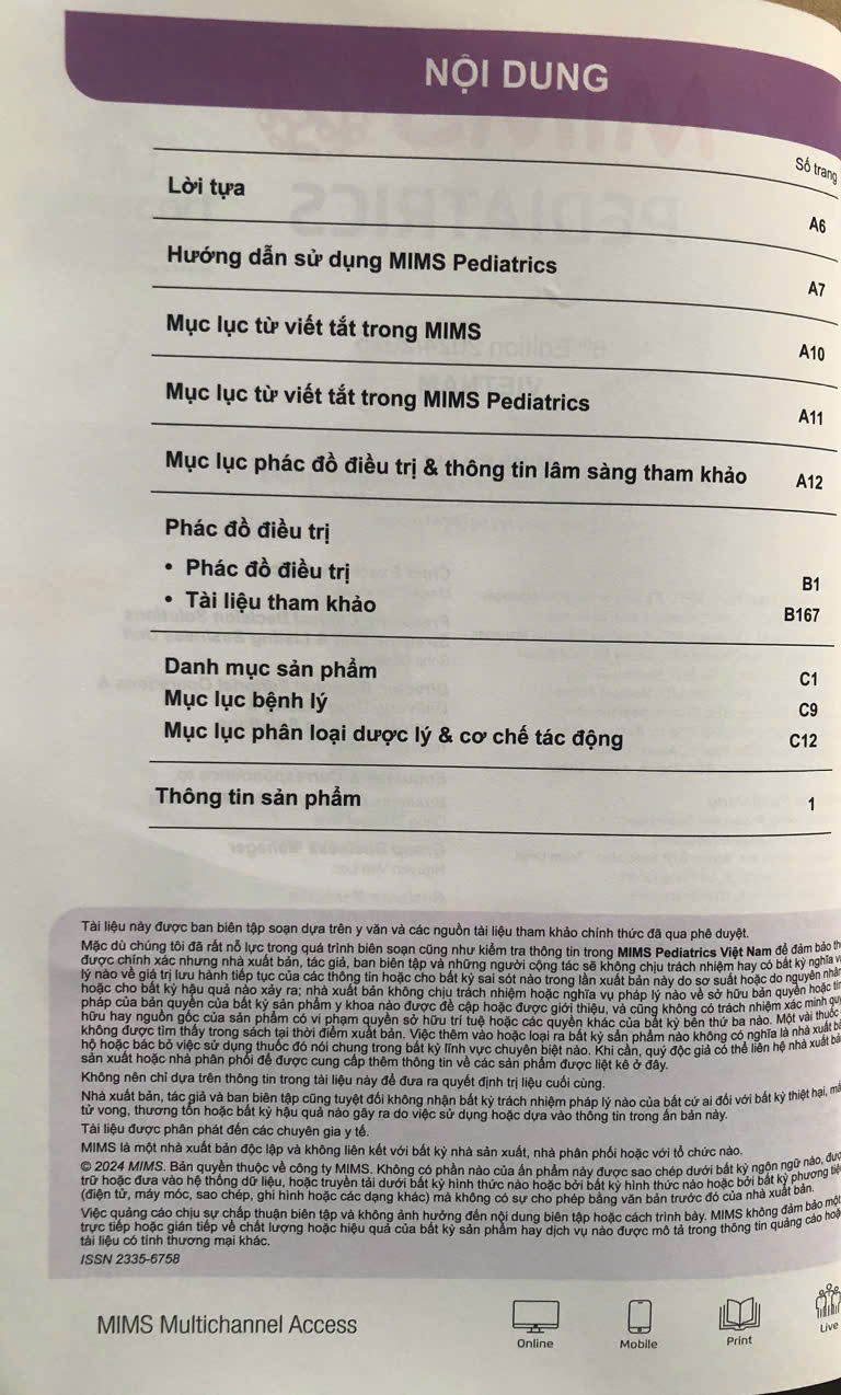 Mục lục từ viết tắt trong Mims PEDIATRICS.