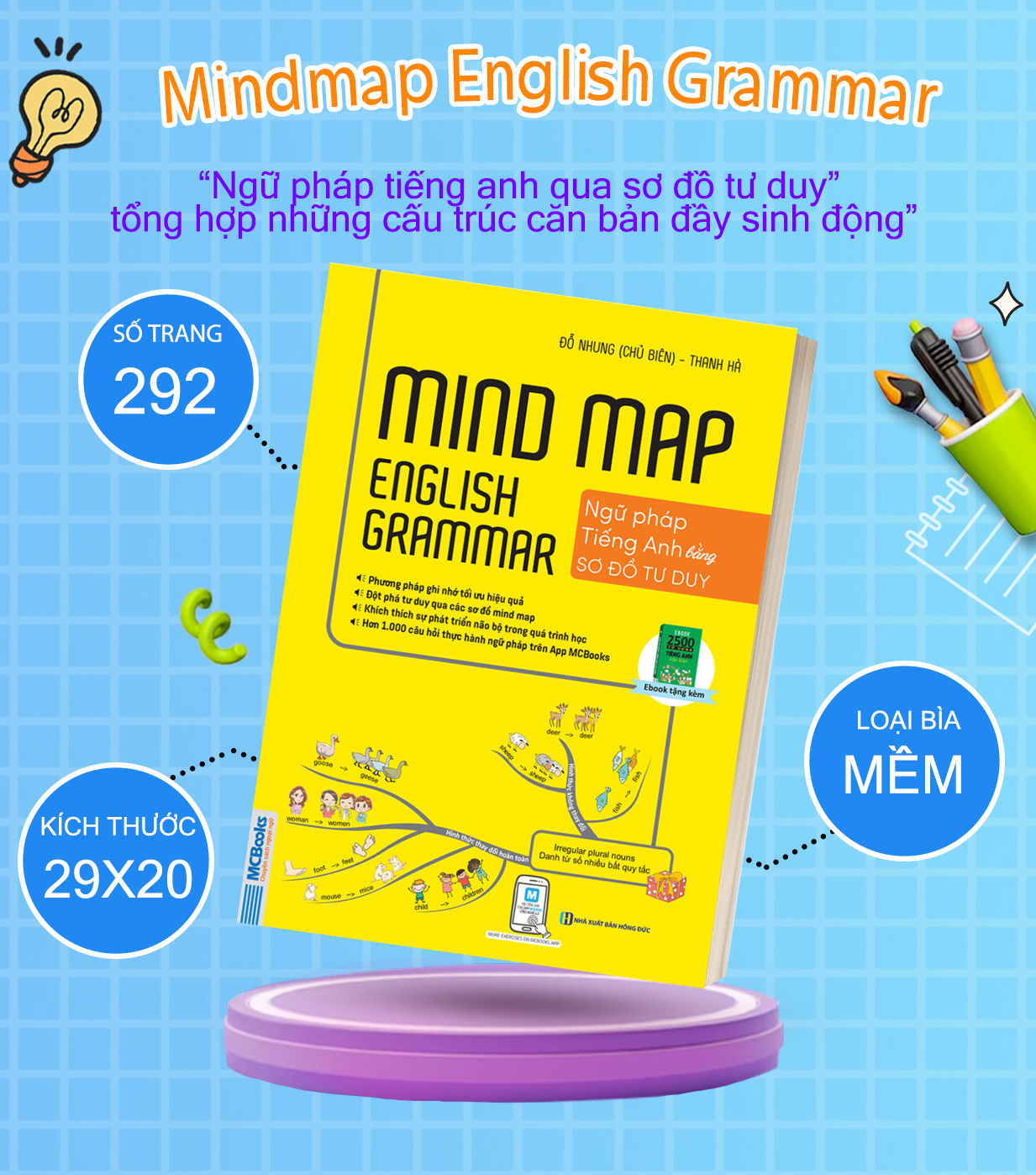 Cuốn sách ngữ pháp tiếng Anh bằng sơ đồ tư duy chính là giải pháp dành cho người học cách khắc phục những nhược điểm của mình bằng việc sử dụng sơ đồ tư duy