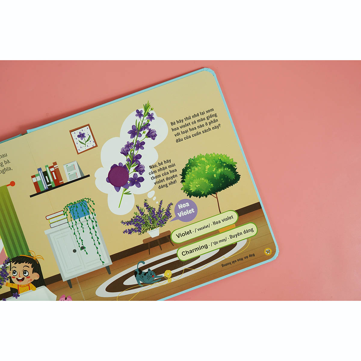 Điểm độc đáo của Sách mùi hương nằm ở các tem mùi hương được gắn kèm trong mỗi trang sách. Trẻ và bố mẹ có thể chà sát nhẹ tem mùi hương để ngửi mùi hương của các loại hoa và quả.