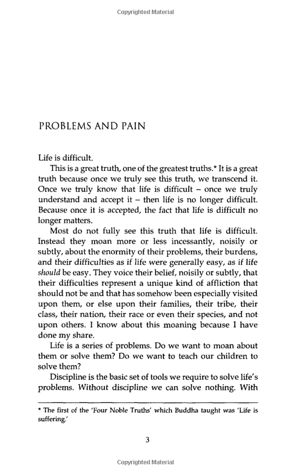 Confronting and solving problems is a painful process which most of us attempt to avoid. And the very avoidance results in greater pain and an inability to grow both mentally and spiritually. Drawing heavily on