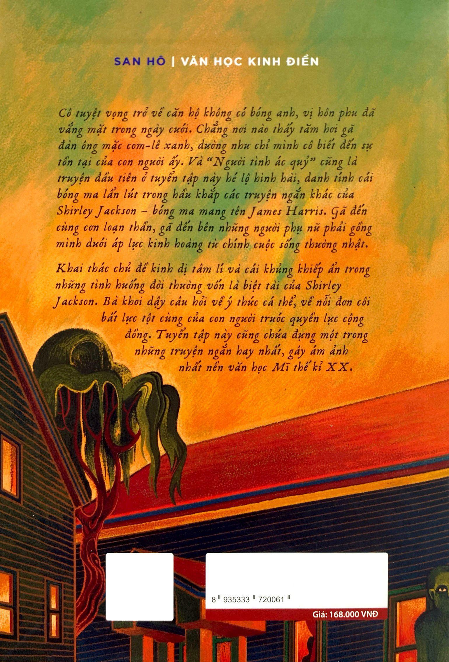 Cô tuyệt vọng trở về căn hộ không có bóng anh, vị hôn phu đã vắng mặt trong ngày cưới. Chẳng nơi nào thấy tăm hơi gã đàn ông mặc vét xanh, dường như chỉ m.ình cô biết đến sự tồn tại của con người ấy. Và Người tình ác quỷ cũng là truyện đầu tiên ở tuyển tập này hé lộ hình hài, danh tính cái bóng ma lẩn lút trong hầu khắp các truyện ngắn khác của Shirley Jackson – bóng ma mang tên James Harris.