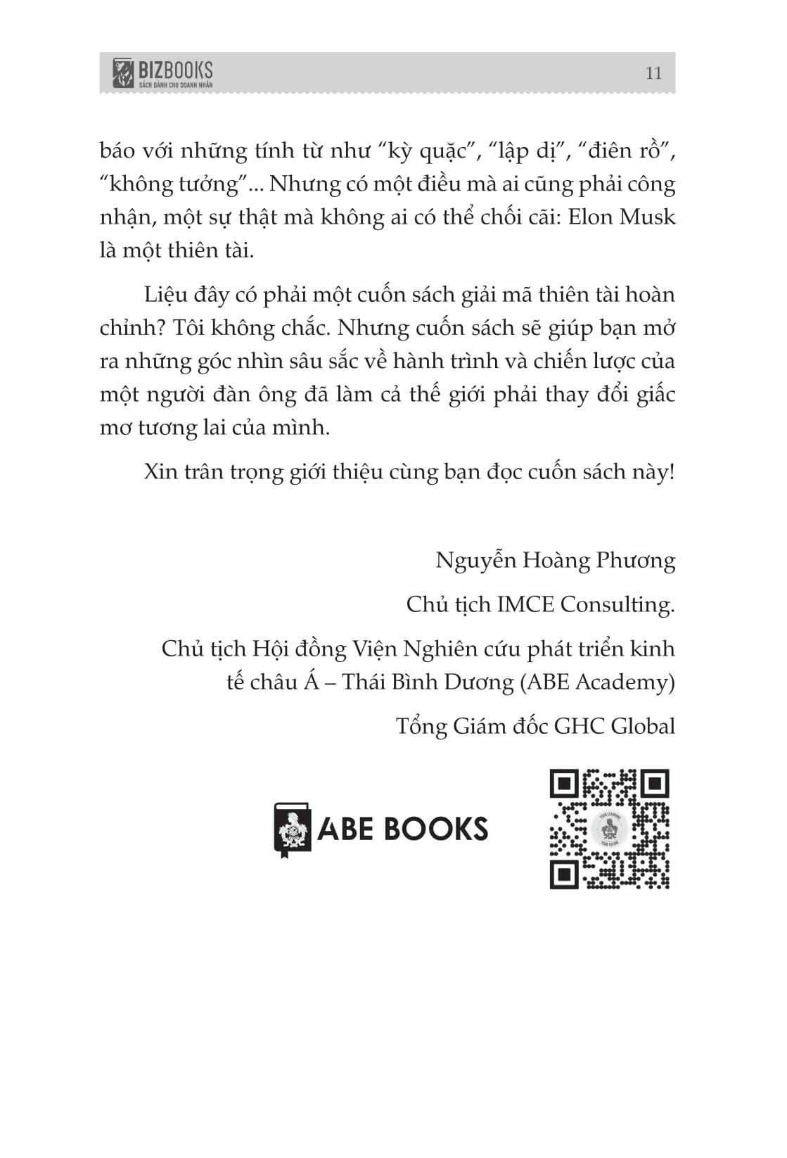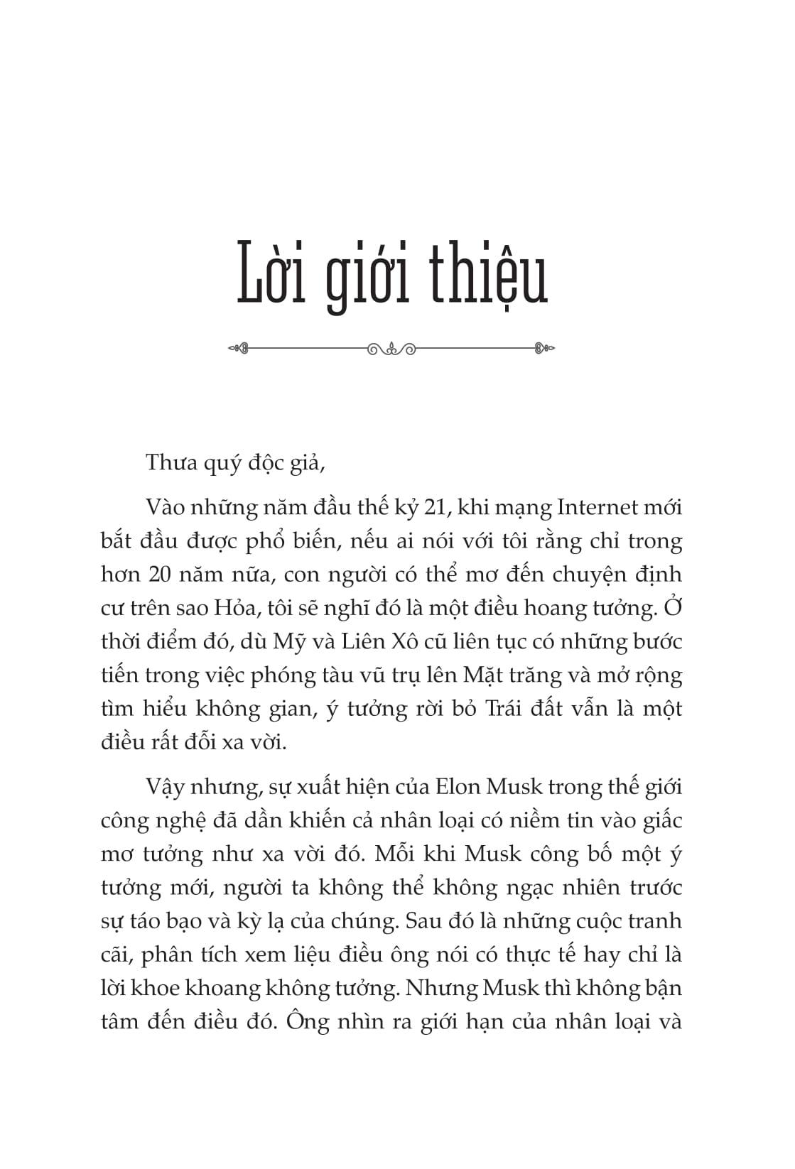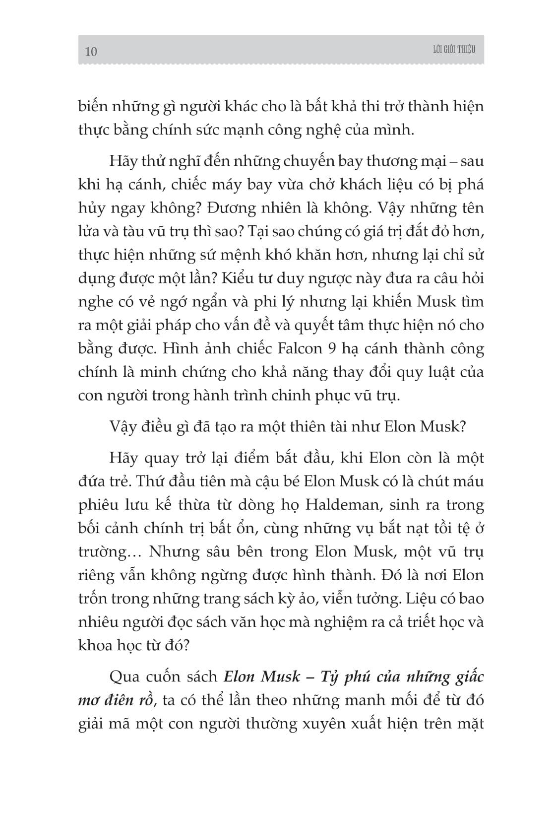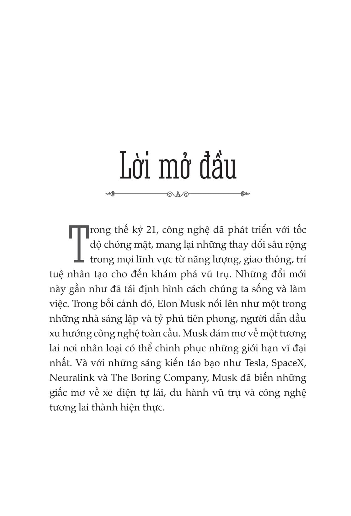 Hành trình của Elon Musk, từ một cậu bé say mê đọc sách khoa học viễn tưởng đến một tỷ phú sáng chế ra những công nghệ đột phá, chính là hành trình của sự đổi mới không ngừng. Musk là hiện thân của Iron Man đời thực, là nguồn cảm hứng lớn lao cho thế hệ hiện tại và tương lai.