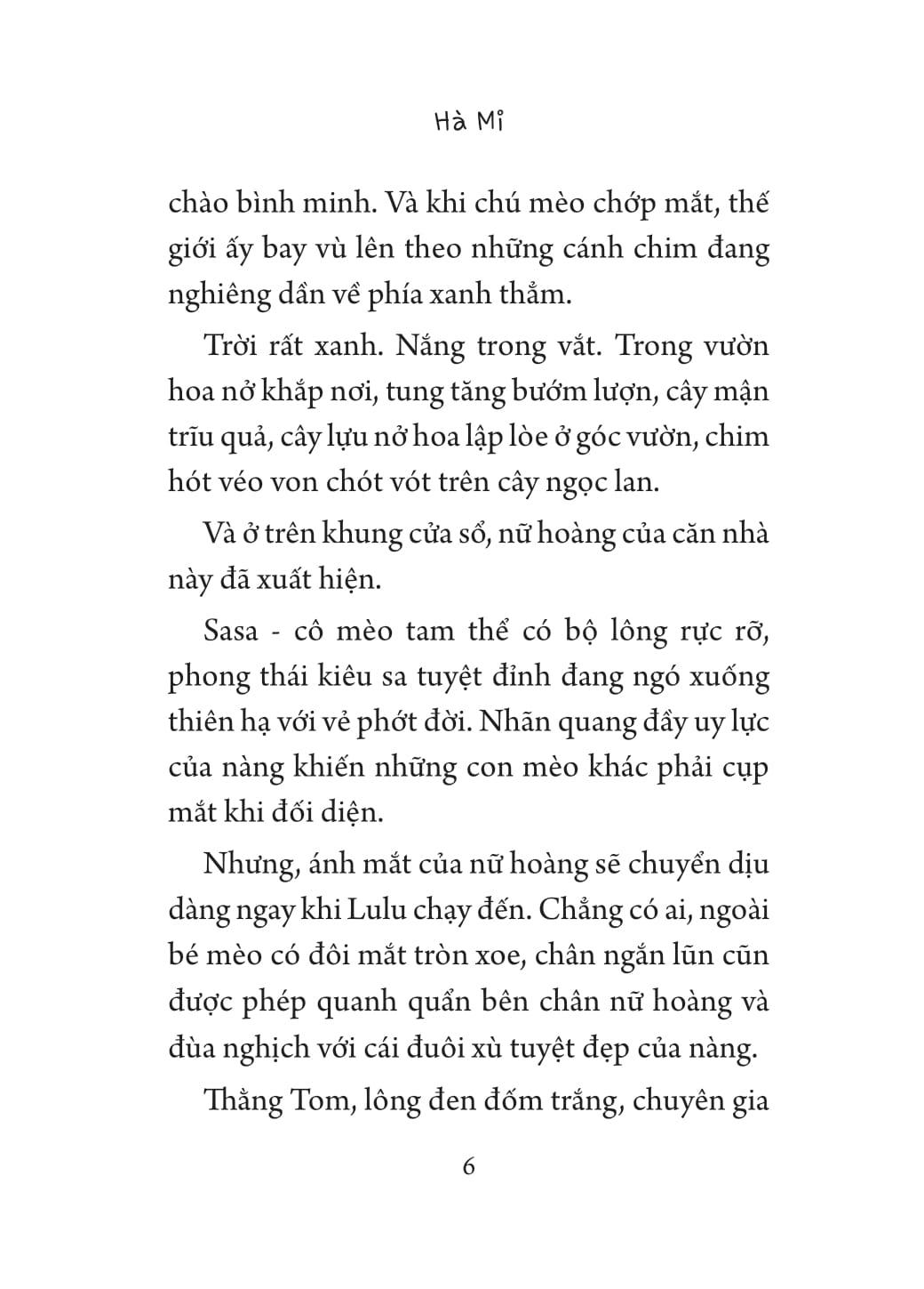 Có thể nói, chỉ với không gian trong một căn nhà nhỏ nhưng tác giả Hà Mi đã cho chúng ta sống với nhiều cung bậc cảm xúc: từ tức giận đến xúc động rồi lại vui sướng sang buồn đau. Những em mèo dường như cũng là “xã hội” thu nhỏ.