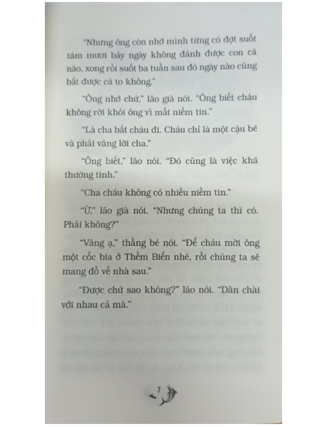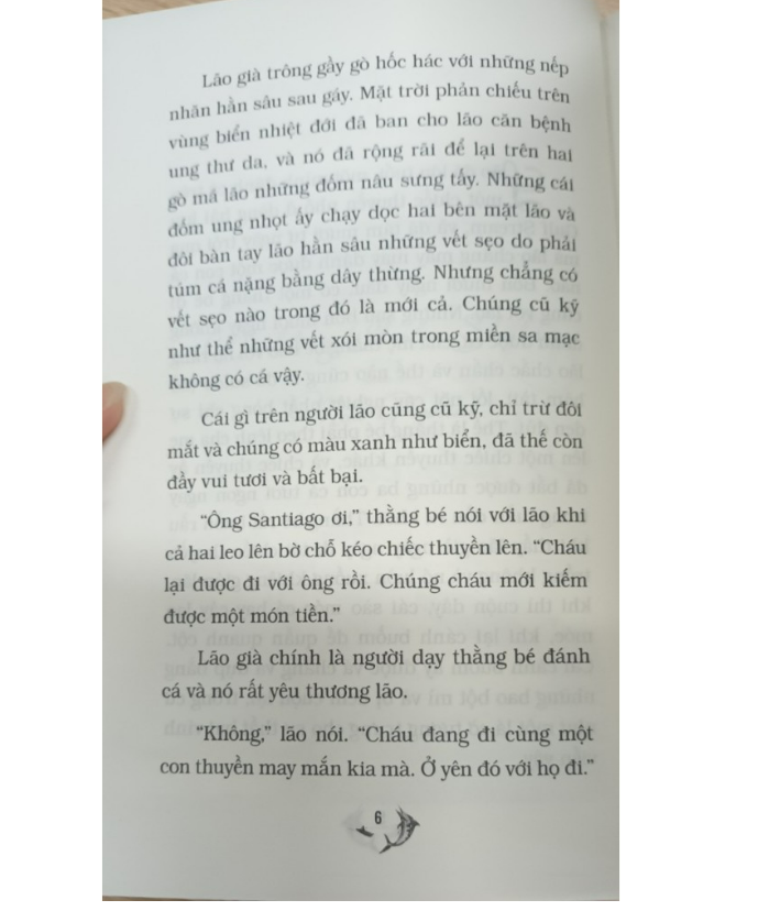 Nhân vật trung tâm của các phẩm là một ông già đánh cá người Cu-ba, người đã chiến đấu trong ba ngày đêm với con cá kiếm khổng lồ trên vùng biển Giếng Lớn khi ông câu được nó. Sang ngày thứ ba, ông dùng lao đâm chết được con cá, buộc nó vào mạn thuyền và lôi về nhưng đàn cá mập đánh hơi thấy và lăn xả tới, ông lại đem hết sức tàn chống chọi với lũ cá mập, phóng lao, thậm chí cả mái chèo để đánh chúng. Ông giết được nhiều con, đuổi được chúng đi, nhưng con cá kiếm của ông chỉ còn trơ lại một bộ xương khổng lồ. Ông lão trở về khi đã khuya, đưa được thuyền vào cảng, về đến lều, ông nằm vật xuống và chìm vào giấc ngủ, mơ về những con sư tử.