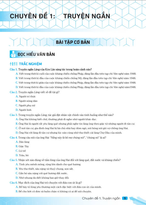 Các câu hỏi, bài tập dạy đọc hiểu văn bản được thiết kế theo các mức độ: nhận biết, thông hiểu và vận dụng. Các bài tập có sự cập nhật các kiến thức cơ bản của các bộ sách giáo khoa khác nhau, bám sát theo cấu trúc các dạng để thị phổ biến hiện nay, giúp học sinh làm quen và dẫn thành thạo các dạng bài tập ôn luyện và thi cử. Các bài tập cũng được đa dạng hoá, sử dụng nhiều nguồn ngữ liệu, làm mới về văn bản đọc hiểu, giúp người học tiếp cận các dạng tư liệu khác nhau.