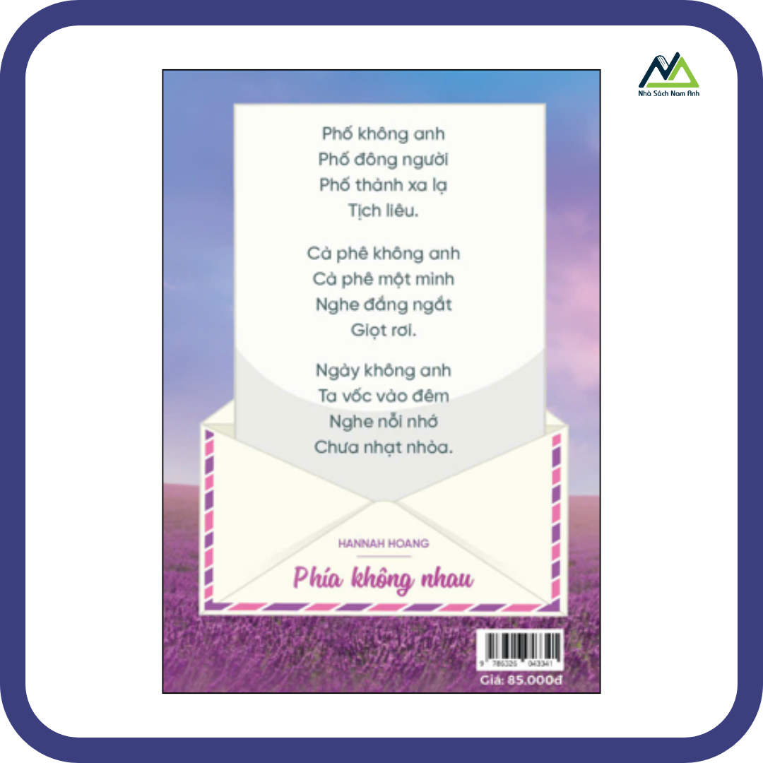“Phía Không Nhau” là tập thơ – tản văn chứa đựng những nỗi niềm sâu lắng về tình yêu, sự chia xa và những khoảng trống trong tâm hồn. Với giọng văn tinh tế, mộc mạc mà day dứt, Hannah Hoang đưa người đọc đi qua những mùa nhớ, những tháng ngày cô đơn, xen lẫn kỷ niệm về gia đình, quê hương và tuổi trẻ. Trong từng trang sách, bạn sẽ bắt gặp chính mình – trong một buổi chiều phố cũ, trong một cơn mưa bất chợt, trong khoảng lặng nhớ thương ai đó đã từng rất gần mà giờ đã xa. “Phía Không Nhau” không chỉ là cuốn sách để đọc, mà là một người bạn đồng hành để sẻ chia, để lắng nghe và để chữa lành. Một lựa chọn tuyệt vời cho những ai yêu thơ ca, thích sự chiêm nghiệm nhẹ nhàng nhưng sâu sắc.
