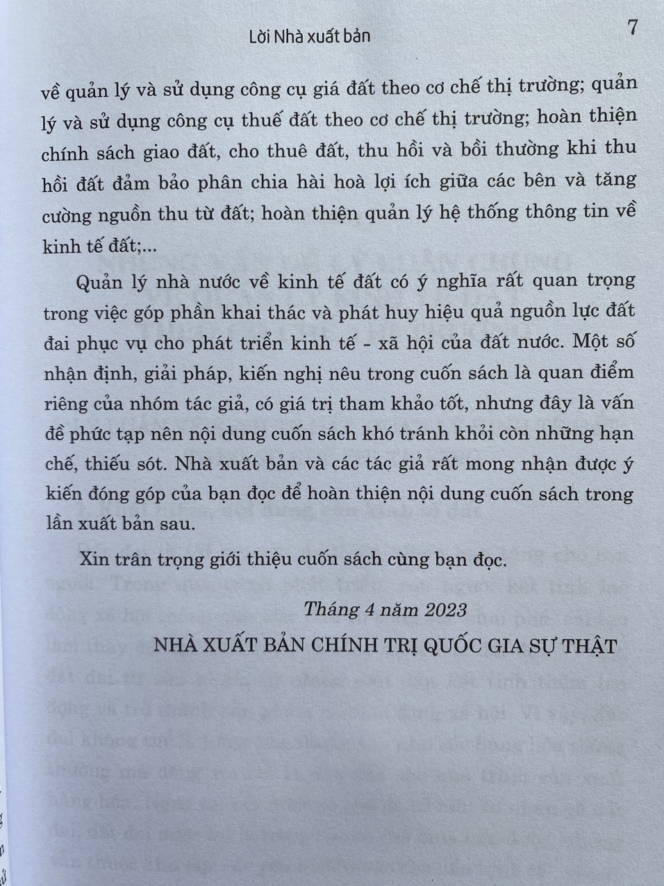 Cuốn sách " QUẢN LÝ NHÀ NƯỚC VỀ KINH TẾ ĐẤT THEO CƠ CHẾ THỊ TRƯỜNG Ở VIỆT NAM" nội dung trong cuốn sách đề cập những vấn đề lý luận chung về quản lý nhà nước về kinh tế đất theo cơ chế thị trường trong điều kiện sở hữu toàn dân về đất đai, khai thác nguồn thu từ đất, kinh nghiệm của các nước trên thế giới về quản lý kinh tế đất, điều tiết giá trị gia tăng, khai thác thu từ đất và bài học rút ra cho Việt Nam; đánh giá thực trạng quản lý nhà nước về giá đất, chính sách kinh tế trong quản lý đất đai, chính sách và công cụ thuế, phí, lệ phí trong quản lý nhà nước về kinh tế đất, quản lý nhà nước về thị trường quyền sử dụng đất, quản lý hệ thống thông tin kinh tế đất,... Qua đó nhóm tác giả đã mạnh dạn đề xuất các giải pháp để tăng cường quản lý kinh tế đất, khai thác nguồn thu từ đất theo cơ chế thị trường với những nội dung cần sửa đổi, bổ sung Luật Đất đai năm 2013 về quản lý và sử dụng công cụ giá đất theo cơ chế thị trường; quản lý và sử dụng công cụ thuế đất theo cơ chế thị trường; hoàn thiện chính sách giao đất, cho thuê đất, thu hồi và bồi thường khi thu hồi đất đảm bảo phân chia hài hòa lợi ích giữa các bên và tăng cường nguồn thu từ đất; hoàn thiện quản lý hệ thống thông tin về kinh tế đất;...