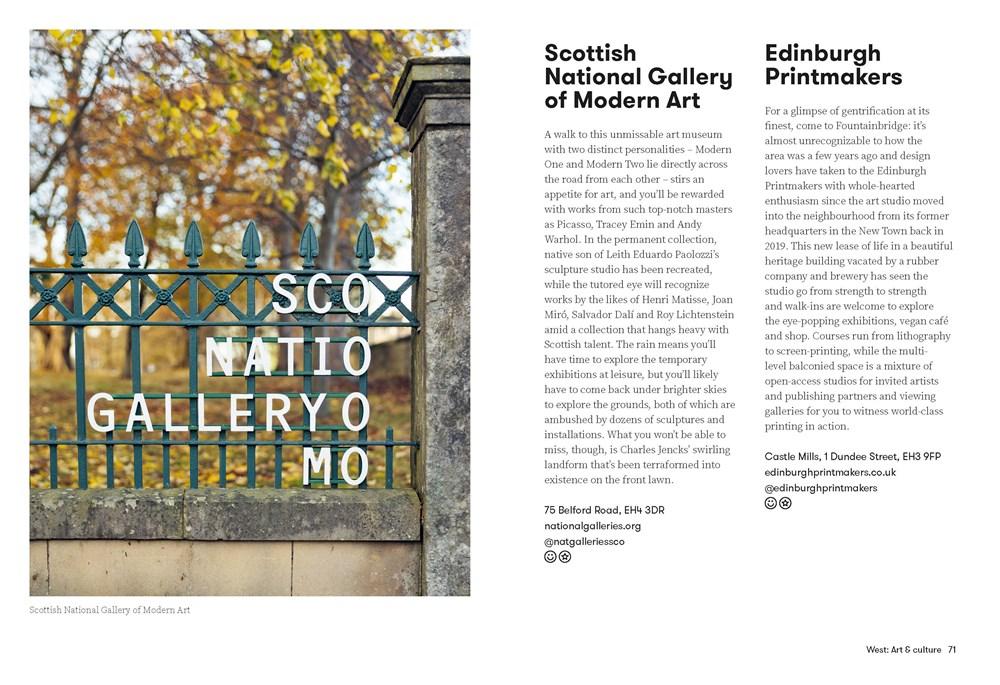 ---------------------------------------- Cosy pubs, vibrant restaurants, world-class galleries and everything in between, Scotland's lively capital is full of incredible things to do, whatever the weather. From iconic institutions to local, under-the-radar spots, Rainy Day Edinburgh is the essential guide to 100 of the best things to do in the city when it's raining (which is a lot of the time). Whether you're looking for delicious places to eat, inspiring museums to mooch around or bars serving up creative cocktails, this handy book has it covered.