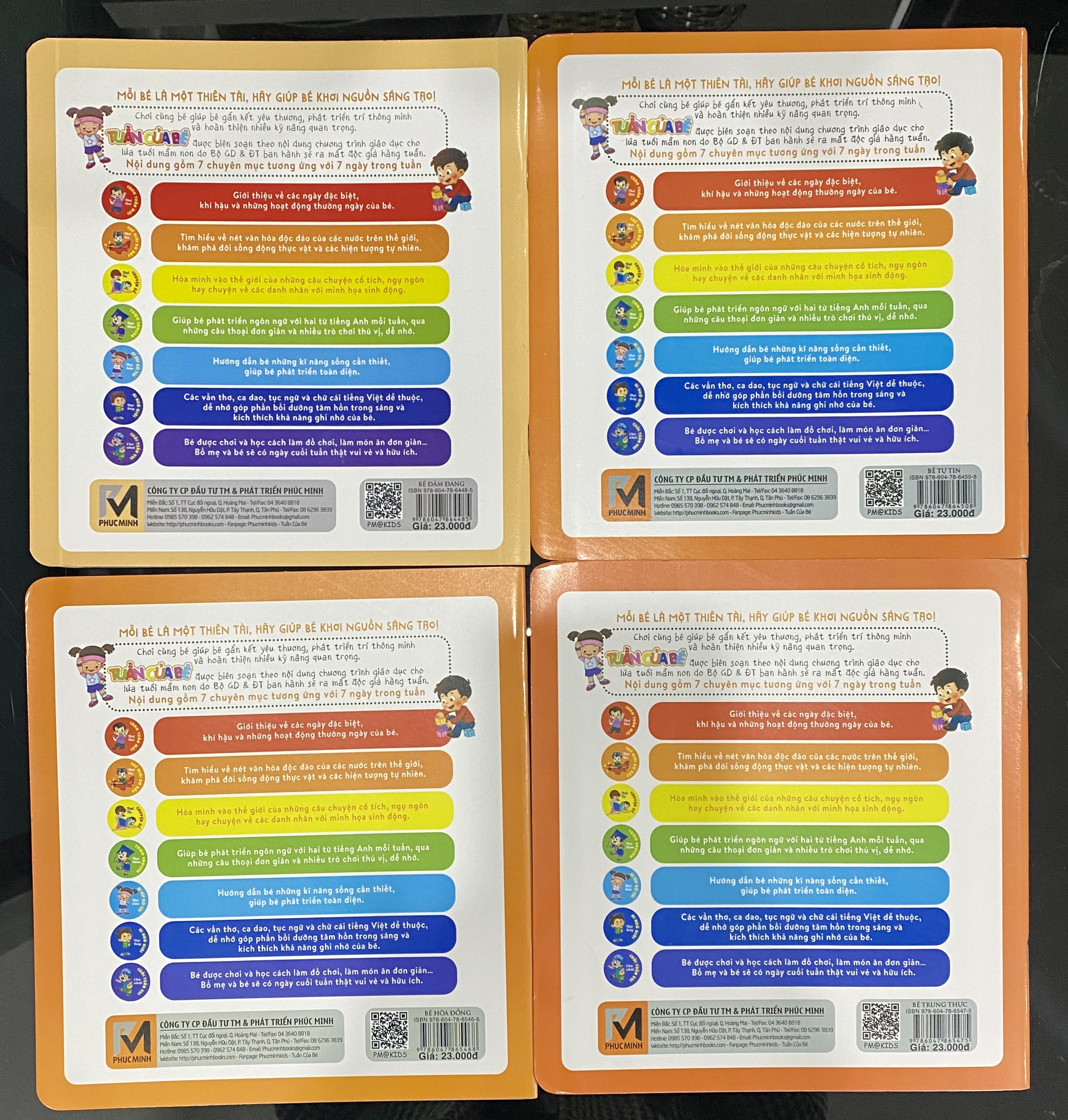 Thứ Năm- Towo English: Mỗi cuốn sẽ dạy cho bé làm quen 2 từ vựng tiếng Anh theo chủ đề qua câu thoại đơn giản, dễ nhớ;
