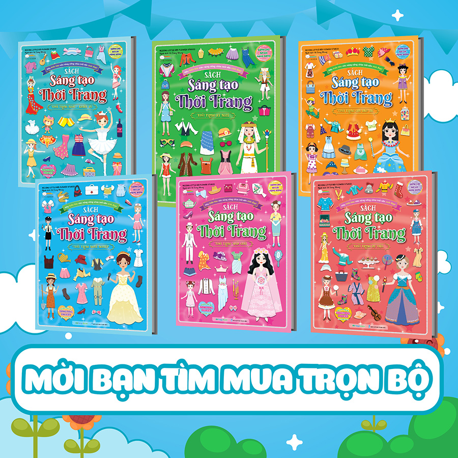 Bộ sách sáng tạo thời trang gồm có 6 cuốn, mỗi cuốn có 8 bối cảnh đa dạng giúp các bé thỏa sức sáng tạo, trở thành một nhà thiết kế thời trang tài ba. Ngoài ra, với hơn 100 stickers bao gồm trang phục...