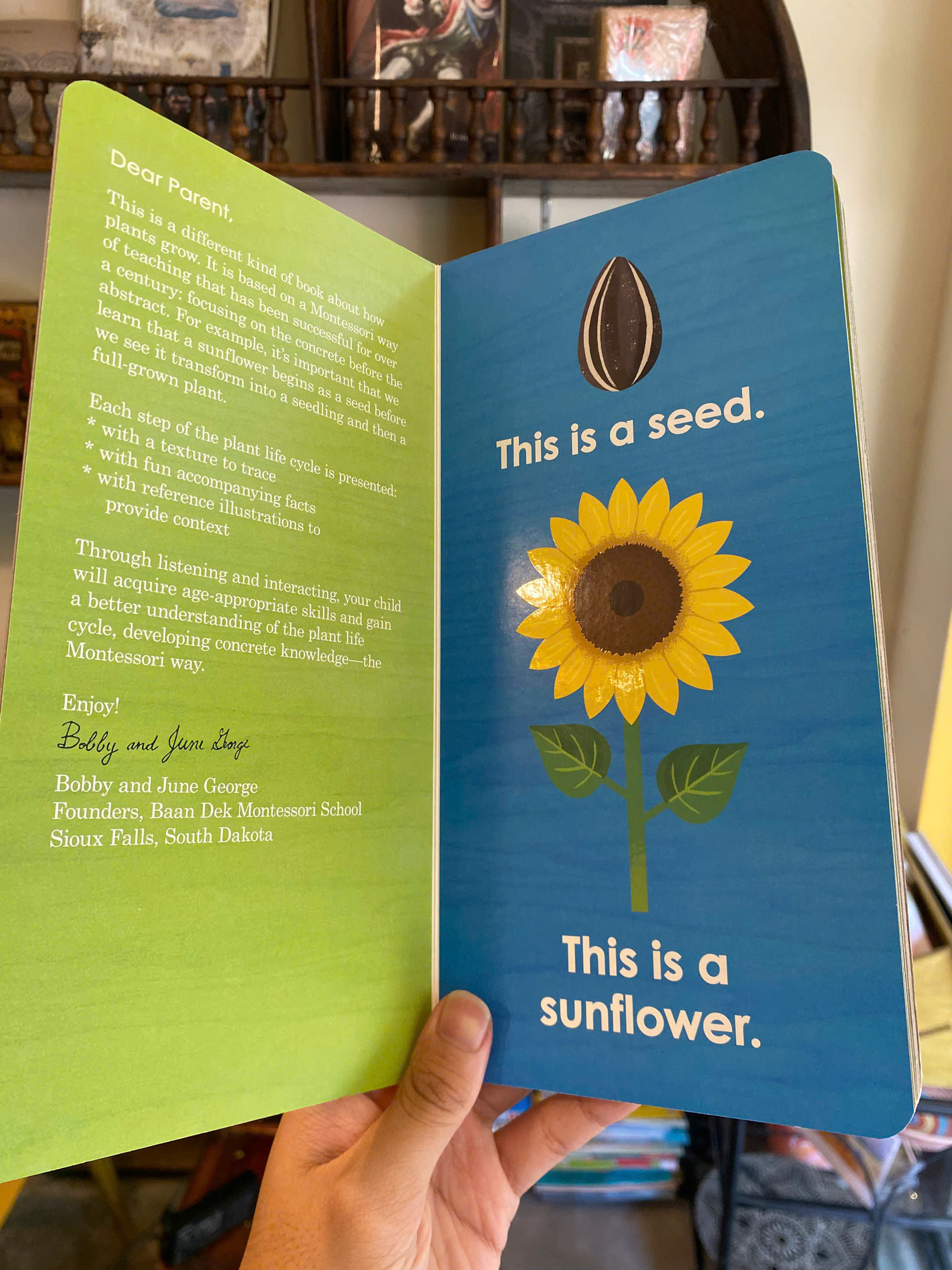 Học vòng đời thực vật theo phương pháp Montessori! Dựa trên phương pháp giảng dạy Montessori đã được chứng minh, Montessori: Seed Work giới thiệu cho độc giả nhỏ tuổi về vòng đời thực vật, bắt đầu từ hạt giống trước khi chuyển sang từng giai đoạn phát triển của cây. Các yếu tố trên mỗi trang được thiết kế họa tiết để tăng tính tương tác, và cuốn sách có hai ô gấp thú vị - một ô lật xuống để lộ bộ rễ cây, và ô còn lại mở ra để lộ bông hoa hướng dương đang hướng về phía mặt trời. Được viết bởi Bobby George, đồng sáng lập Baan Dek Montessori, bộ sách Montessori giới thiệu cho độc giả nhỏ tuổi những khái niệm chính bằng cách bắt đầu từ cụ thể và chuyển sang trừu tượng. Với mỗi cuốn sách, độc giả nhỏ tuổi sẽ tiếp thu thông tin phù hợp với lứa tuổi và hiểu rõ hơn về thế giới xung quanh.