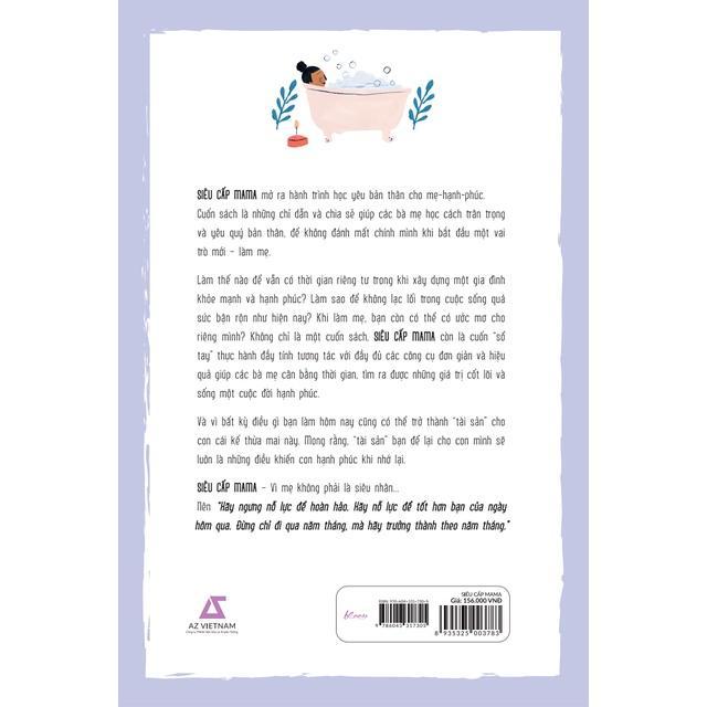 SIÊU CẤP MAMA mở ra hành trình học yêu bản thân cho mẹ-hạnh-phúc. Cuốn sách là những chỉ dẫn và chia sẻ giúp các bà mẹ học cách trân trọng và yêu quý bản thân, để không đánh mất chính mình khi bắt đầu một vai trò mới – làm mẹ.