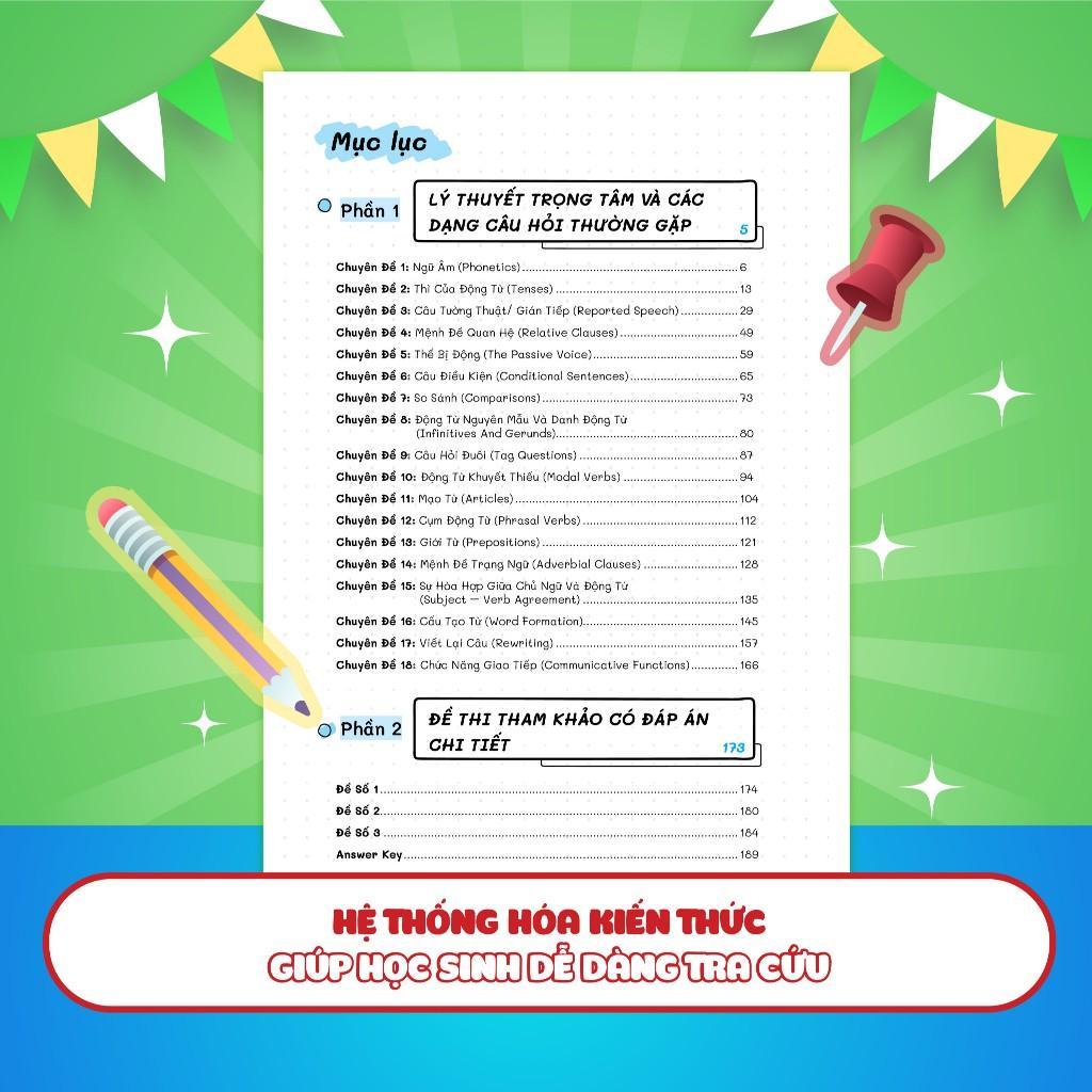 Hệ thống lại kiến thức tiếng Anh theo chuyên đề một cách ngắn gọn, rõ ràng, chi tiết, giúp các em học sinh dễ dàng ghi nhớ.: