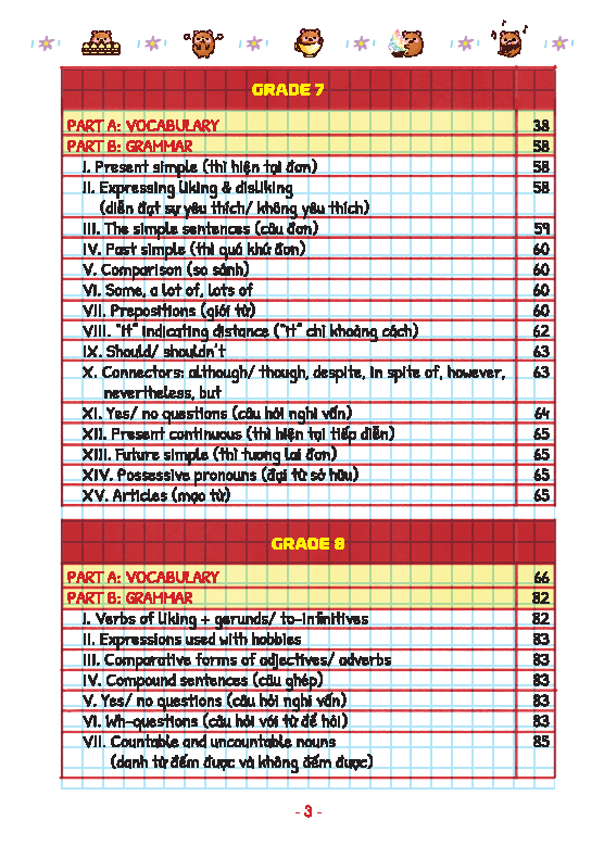 - Tóm tắt ngữ pháp, từ vựng, mẫu câu quan trọng