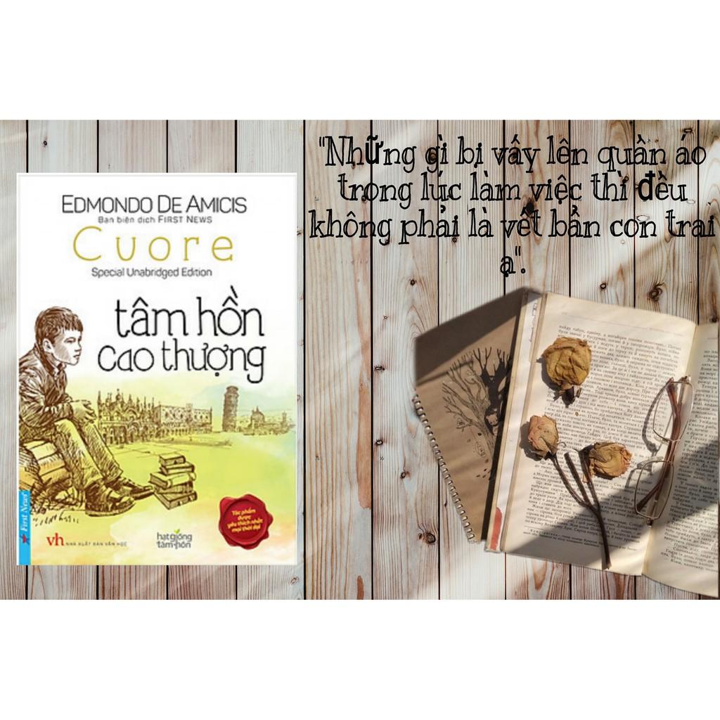 Tất cả những câu chuyện này, là dị tật của văn hóa “câu like” mà giới trẻ đang “cuồng”. Làm thế nào để giải tỏa những ung nhọt này? Lời giải cho bài toán này, thiết nghĩ, chỉ có sách. Trên mảnh đất mà phù sa là những câu chuyện nhỏ của Enico Bottini đắp bồi, những người biên soạn tập sách nổi tiếng nay hy vọng, những hạt mầm tử tế sẽ ươm chồi, nảy lộc. Đó chính là lý do, First News mang đến bạn đọc Tâm hồn cao thượng, một tác phẩm chưa bao giờ cũ dù đã hơn trăm tuổi trong những ngày đầu năm 2017. Thắp lên một ngọn nến sáng, gieo một niềm tin yêu, từ bạn đọc, ngọn lửa của sự tử tế sẽ tỏa lan. Chúng tôi tin như vậy!