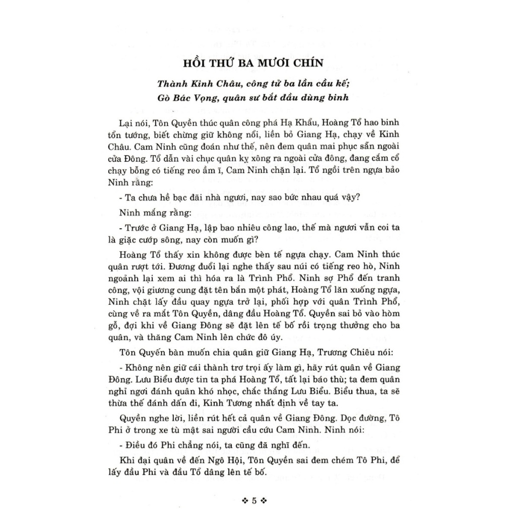 TAM QUỐC DIỄN NGHĨA tên đầy đủ là TAM QUỐC CHÍ THÔNG TỤC DIỄN NGHĨA, là tiểu thuyết lịch sử chương hồi nổi tiếng của Trung Quốc cổ đại do nhà văn La Quán Trung sống vào khoảng cuối đời Nguyên đến cuối đời Minh. Bản Tam Quốc lưu truyền rộng rãi nhất ngày nay là bản do Mao Tôn Cương tu sắc và bình chú.