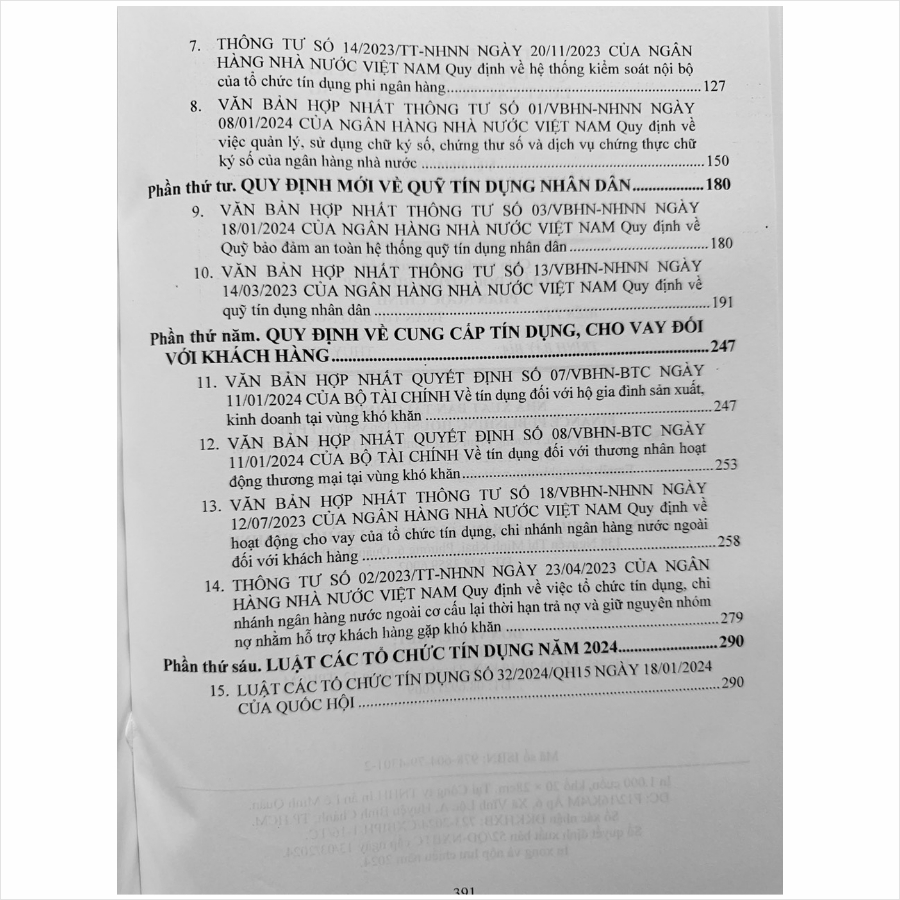 - Toàn bộ sách bìa mềm khổ lớn 20 x 28 cm phân phối bởi Nhà sách Nam Việt đều được bọc sách Plastic MIỄN PHÍ và xuất hóa đơn điện tử đầy đủ, nhanh chóng. …//… Lời giới thiệu: Ngày 18/01/2024 Quốc hội đã thông qua Luật Các tổchức tín dụng số 32/2024/QH15 gồm XV Chương với 210 Điều. Luật Các tổ chức tín dụng 2024 có hiệu lực từ 01/7/2024. Bên cạnh hoàn thiện các quy định hạn chế tình trạng thao túng hoạt động của tổ chức tín dụng, Luật các Tổ chức tín dụng 2024 vừa được Quốc hội thông qua có nhiều điểm mới như: Hoàn thiện các quy định về hoạt động và bảo đảm an toàn trong hoạt động của tổ chức tín dụng và quỹ tín dụng nhân dân; Quy định về dịch vụ ngân hàng qua phương tiện điện tử; Quy định thúc đẩy quá trình cơ cấu tại tổ chức tín dụng và xử lý tổ chức tín dụng yếu kém; Luật hóa quy định về xử lý nợ xấu, tài sản đảm bảo của khoản nợ xấu… Nhằm phổ biến đến Quý Cơ quan, Đơn vị và Quý khách hàng thân thiết nắm bắt kịp thời những quy định mới nêu trên. Nhà sách Nam Việt xin trân trọng giới thiệu cuốn sách: Thẩm Định Tín Dụng – Quy Định Về Quản Lý Rủi Ro và Luật Các Tổ Chức Tín Dụng …//… Cuốn sách gồm các phần chính sau: Phần thứ nhất. Thẩm định tín dụng & quản lý rủi ro tín dụng ngân hàng Phần thứ hai. Chuyển đổi số và bảo đảm an ninh, an toàn thông tin trong hoạt động ngân hàng Phần thứ ba. Quy định về kiểm soát đặc biệt, kiểm soát nội bộ ngân hàng, tổ chức tín dụng Phần thứ tư. Quy định mới về quỹ tín dụng nhân dân Phần thứ năm. Quy định về cung cấp tín dụng, cho vay đối với khách hàng Phần thứ sáu. Luật các tổ chức tín dụng năm 2024 ...//... Cảm ơn các bạn đã ghé thăm shop Nhà sách Nam Việt ! Sách Thẩm Định Tín Dụng – Quy Định Về Quản Lý Rủi Ro và Luật Các Tổ Chức Tín Dụng Sách Thẩm Định Tín Dụng – Quy Định Về Quản Lý Rủi Ro và Luật Các Tổ Chức Tín Dụng