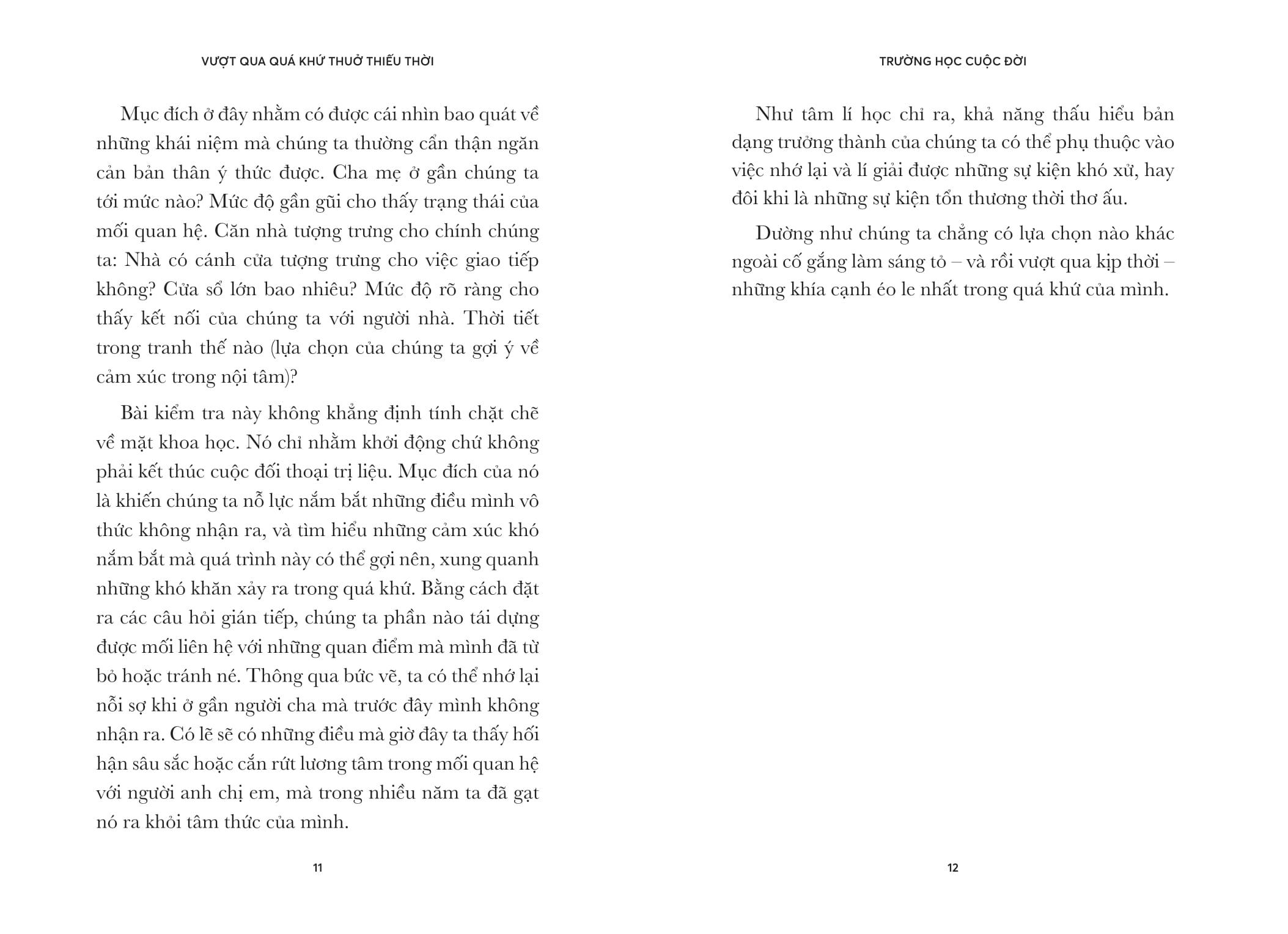 VƯỢT QUA QUÁ KHỨ THUỞ THIẾU THỜI sẽ giúp chúng ta hiểu rõ hơn bản thân hồi nhỏ đã định hình nên con người mà ta muốn trở thành ngày hôm nay. Cuốn sách khám phá mức độ chúng ta có thể gắn kết hành động của m.ình ở hiện tại với những trải nghiệm trong quá khứ, và làm thế nào chúng ta có thể thoát khỏi những khuôn mẫu mà m.ình từng học trong thời thơ ấu.