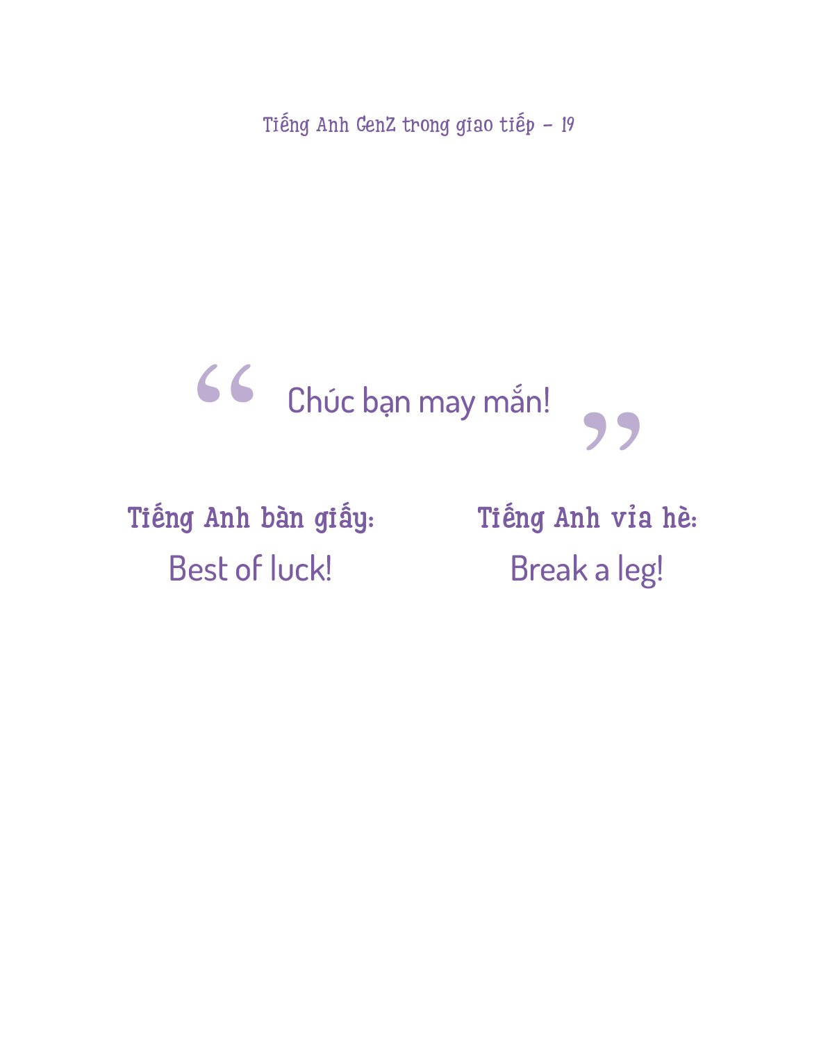 Đây mới chỉ là hai trong số vô vàn điều hấp dẫn mà cuốn “Tiếng Anh GenZ trong giao tiếp” mang lại. Khi khám phá cuốn sách, bạn sẽ ngã ngửa với những từ tiếng Anh quen thuộc nhưng lại đầy mới lạ.