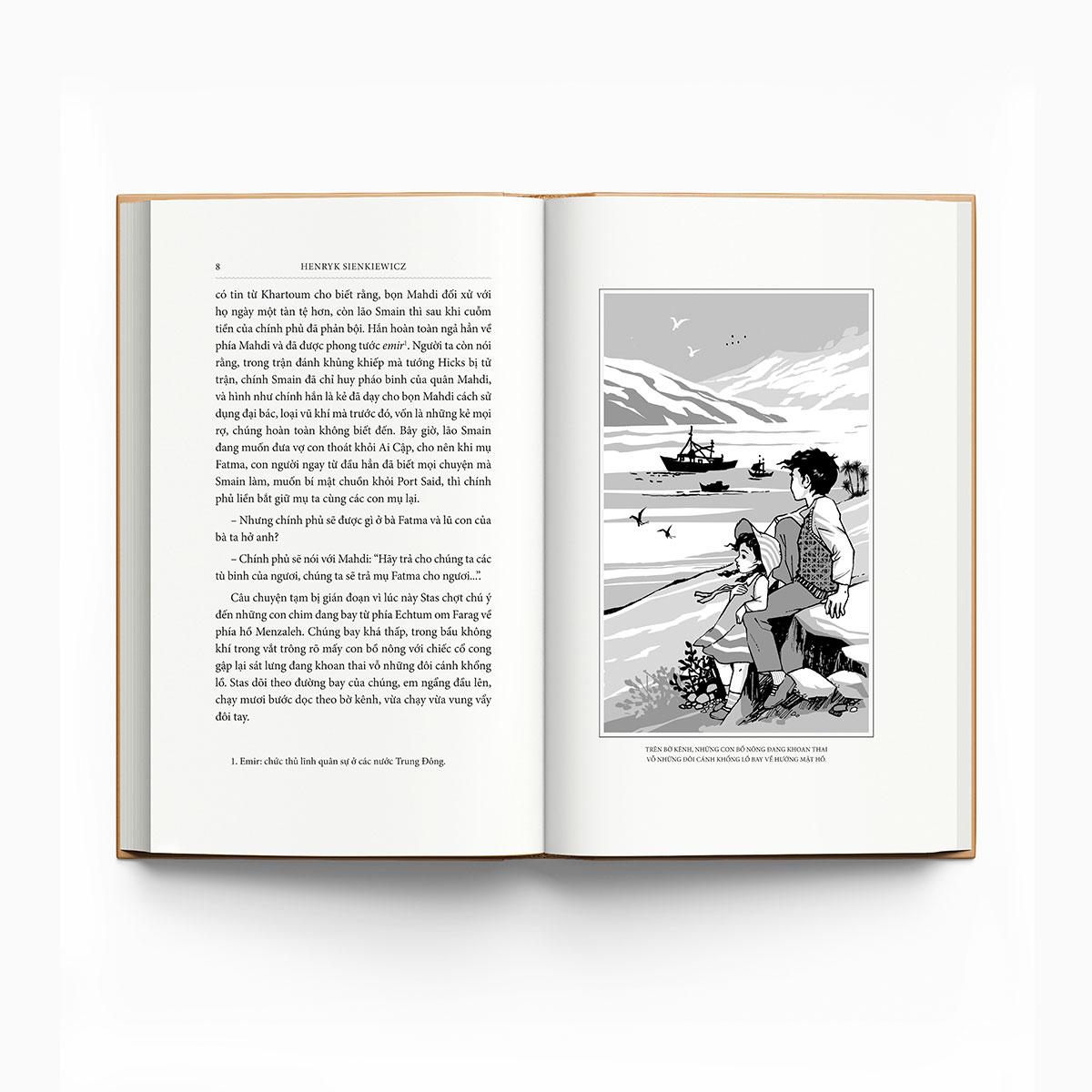 Cuốn sách Trên sa mạc và trong rừng thẳm được dịch giả Nguyễn Hữu Dũng dịch từ nguyên tác tiếng Ba Lan ""W pustyni i w puszczy"" - NXB Pans twowi institut widawniczi.
