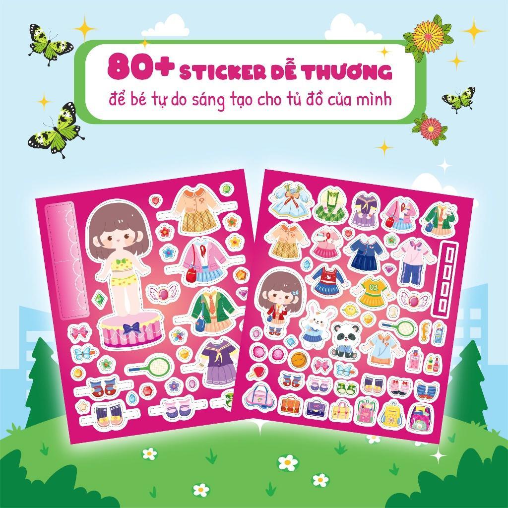Sticker dễ thương: Gồm nhiều trang phục và phụ kiện phong phú, giúp bé thoải mái sáng tạo.