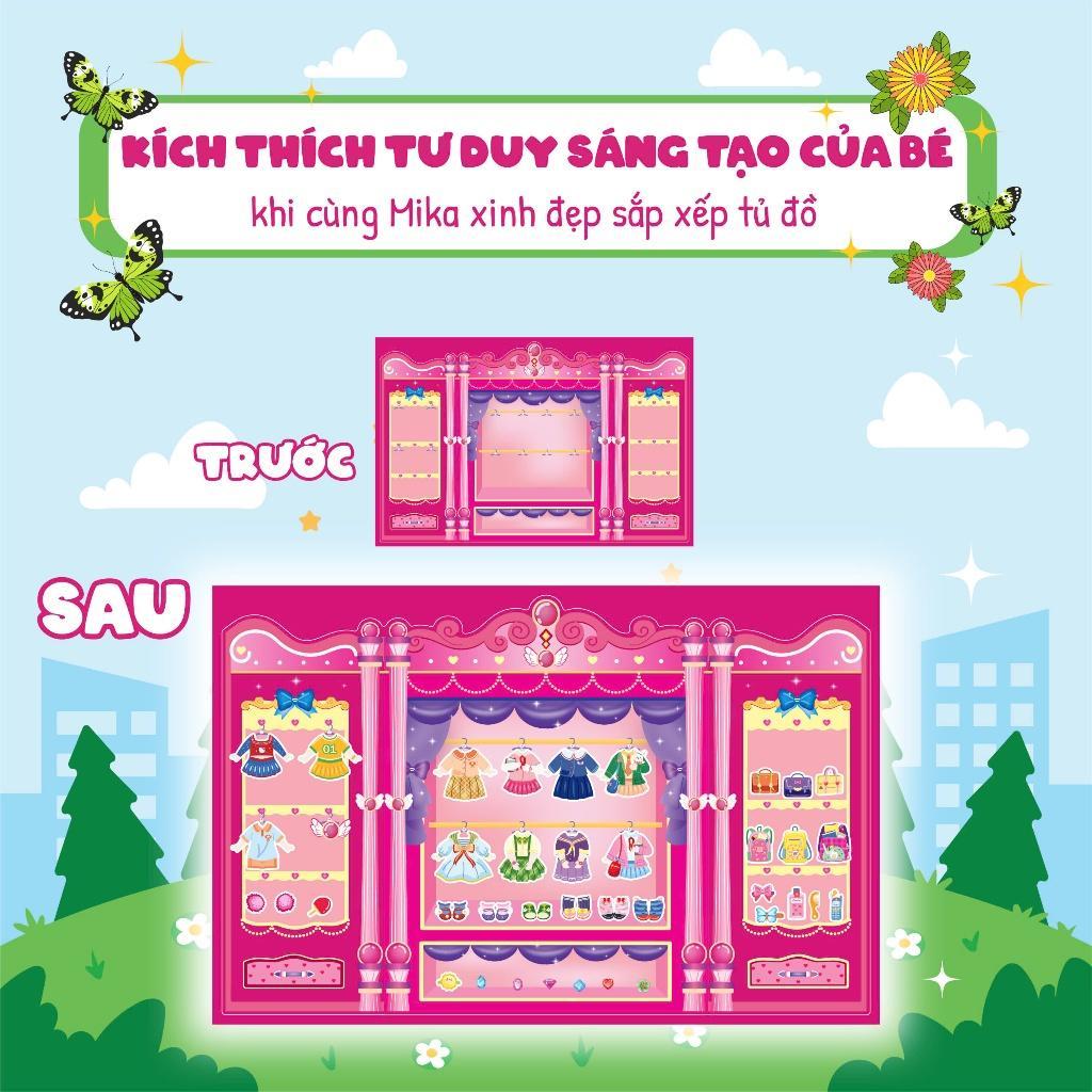 Bộ tranh công chúa giấy: Dễ dàng tháo gỡ và dán lại, bé có thể thay đổi trang phục cho Mika bất cứ lúc nào.