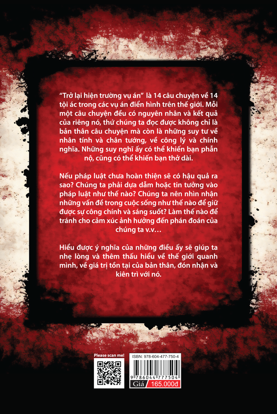 "Trở lại hiện trường vụ án" của tác giả Mã Đinh Hàn Trang là 14 câu chuyện về 14 tội ác trong các vụ án điển hình trên thế giới. Mỗi một câu chuyện đều có nguyên nhân và kết quả của riêng nó, thứ chúng ta đọc được không chỉ là bản thân câu chuyện mà còn là những suy tư về nhân tính và chân tướng, về công lý và chính nghĩa. Những suy nghĩ ấy có thể khiến bạn phẫn nộ, cũng có thể khiến bạn thở dài.