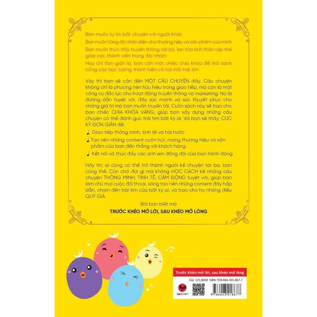 Hãy tin, ai cũng có thể trở thành người kể chuyện tài ba, bạn cũng thế. Còn chờ đợi gì mà không HỌC CÁCH kể những câu chuyện THÔNG MINH, TINH TẾ, CẢM ĐỘNG tuyệt vời, giúp bạn làm chủ mọi cuộc đối thoại, sáng tạo nên những content đầy hấp dẫn, chạm đến trái tim của bất kì ai, và trao cho họ những điều QUÝ GIÁ