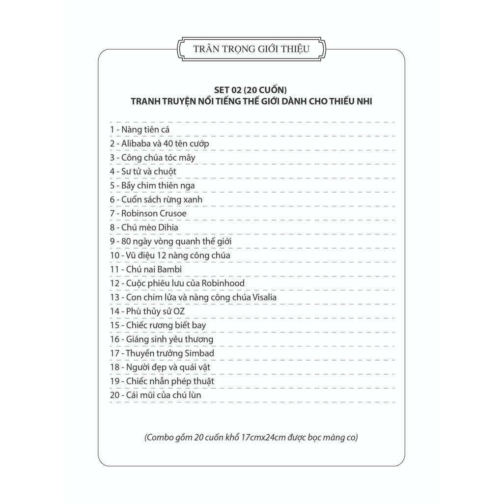 Bộ sách tranh "Truyện cổ tích kinh điển thế giới hay nhất" gồm 15 cuốn sách đặc sắc, mang đến cho các bé những câu chuyện cổ tích nổi tiếng từ khắp nơi trên thế