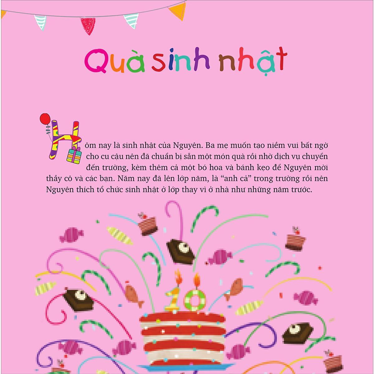 Từng câu chuyện đem đến những góc nhìn khác nhau về sự sẻ chia, niềm vui của sự trao đi, cách đem lại niềm vui và tạo bất ngờ cho người mình yêu mến, cũng như sự ấm áp của tình người và hạnh phúc đơn giản trong cuộc sống. Những câu chuyện tuy ngắn, nhưng đều góp phần lưu lại trong trí nhớ của các em về một cuộc sống tươi đẹp để rồi sau này lớn lên, các em cũng sẽ thầm cảm ơn vì những bài học cuộc sống nhỏ bé nhưng đầy ý nghĩa ấy.