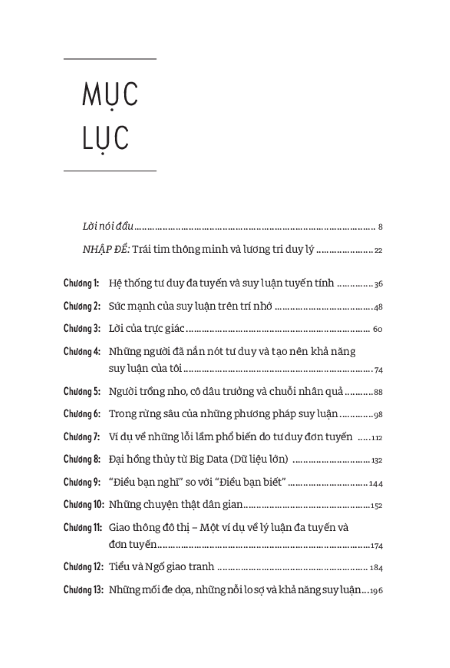 Cuốn sách là viên gạch nối chúng ta với nhau, với xã hội chung quanh, với môi trường toàn cầu, tạo nên một thói quen mà chúng ta đã mất đi hoặc chưa bao giờ có: đó là khả năng lập luận, khả năng minh hoạ, chứng minh, ẩn dụ, suy luận... Chúng ta cần lý trí hoá trở lại những điều chúng ta thường vô tư nhận định mà không dựa vào một nền tảng căn cơ nào, ngoài việc nhân danh trực giác thuần tuý, hoặc tâm linh. Sách sẽ mang hai khía cạnh tưởng như tách bạch hoàn toàn, nhưng thật ra lại bổ sung cho nhau: đó là tư duy hệ thống và những phương pháp suy luận. Cả hai đều cần sử dụng trí tuệ, cả hai đều hiểu vai trò quan trọng của trực giác, nhưng cả hai sẽ cần huy động khả năng trí tuệ liên quan đến lập luận duy lý vô cùng cần thiết.