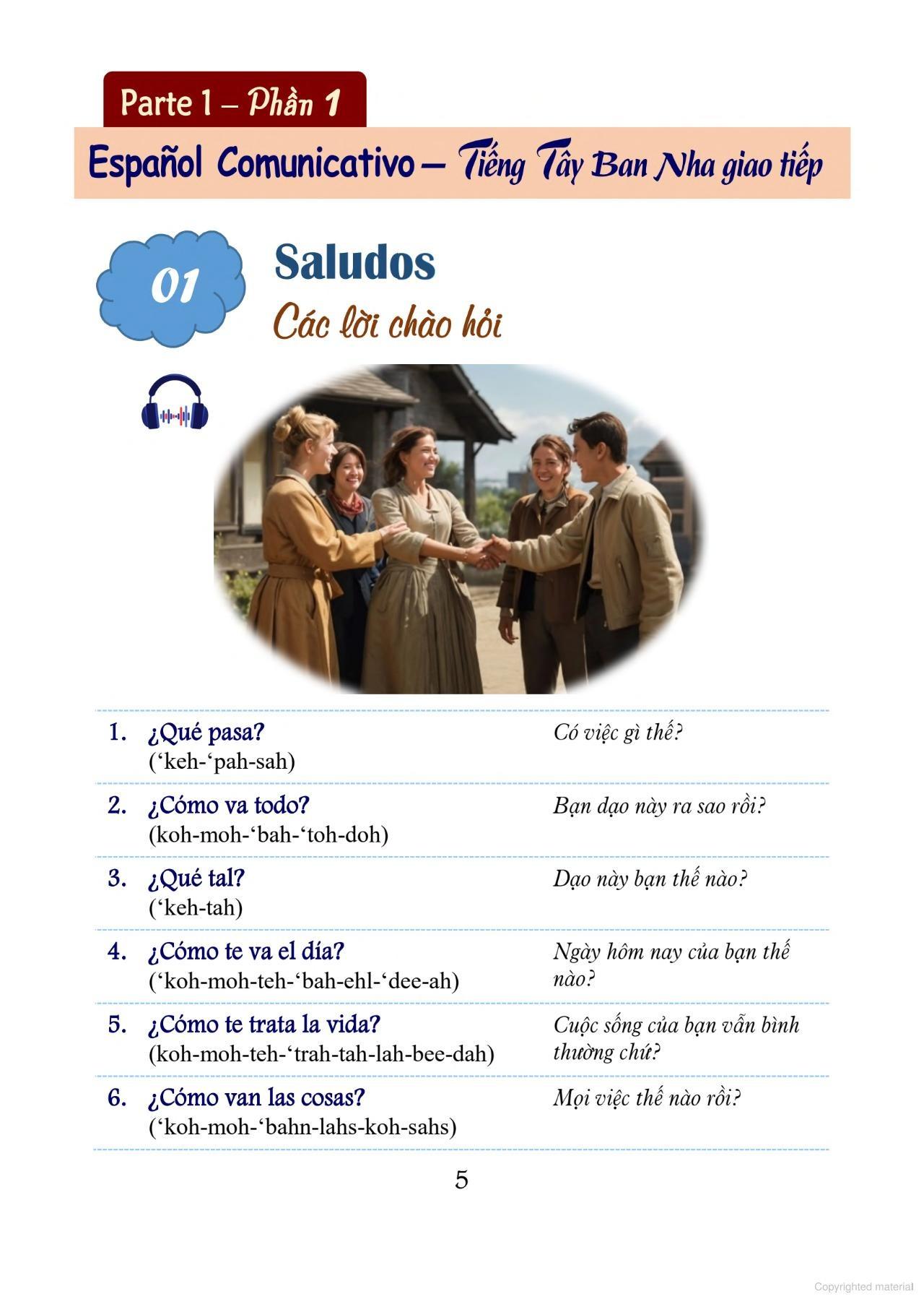 • Phần 1: Español Comunicativo – Tiếng Tây Ban Nha giao tiếp: Phần này giúp bạn tự tin trò chuyện trong đời sống hằng ngày